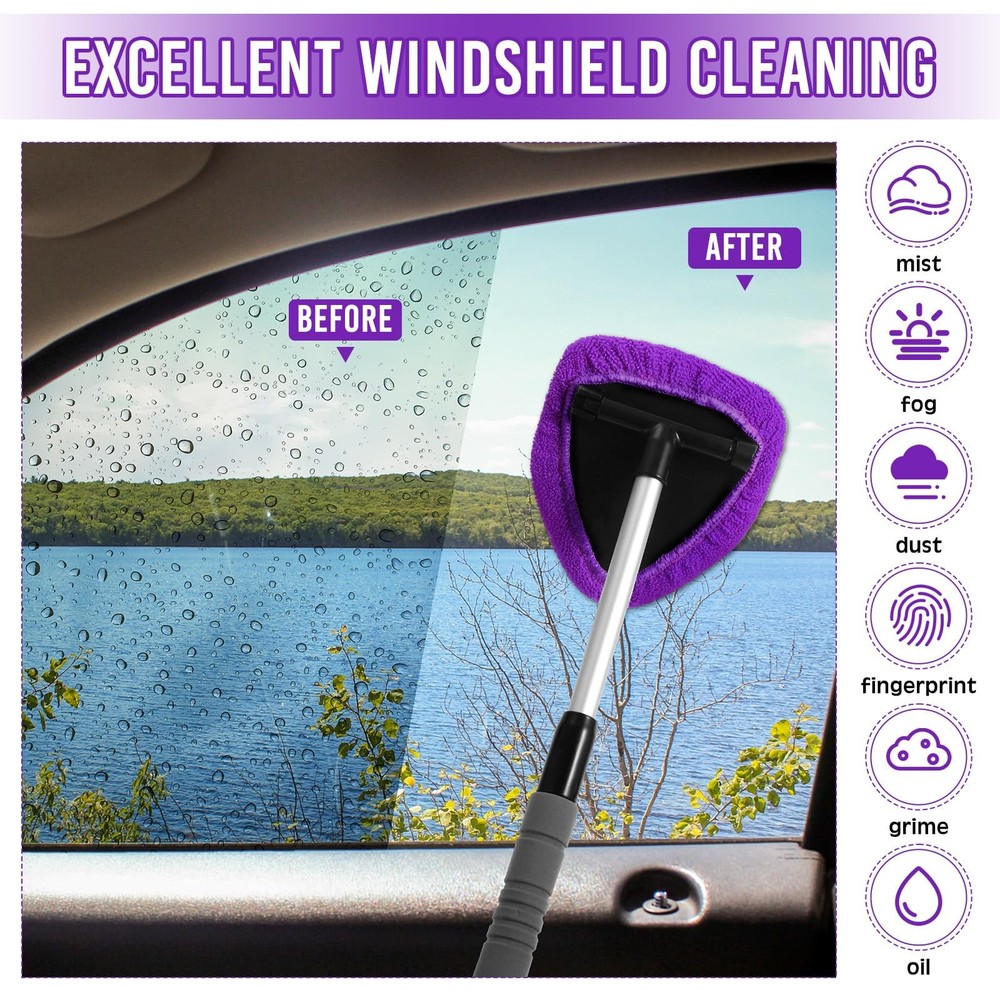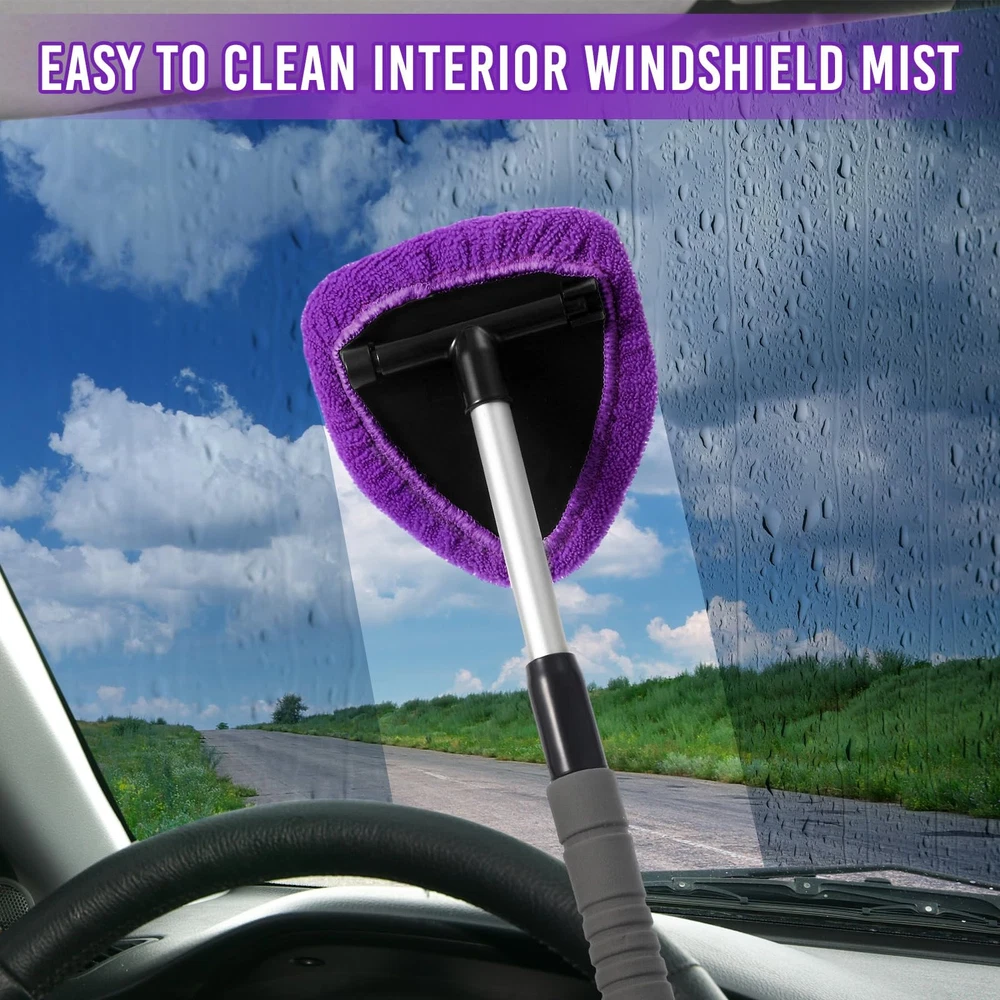 10-Piece Car Window Cleaning Kit with Extendable Handle & 6 Microfiber Pads