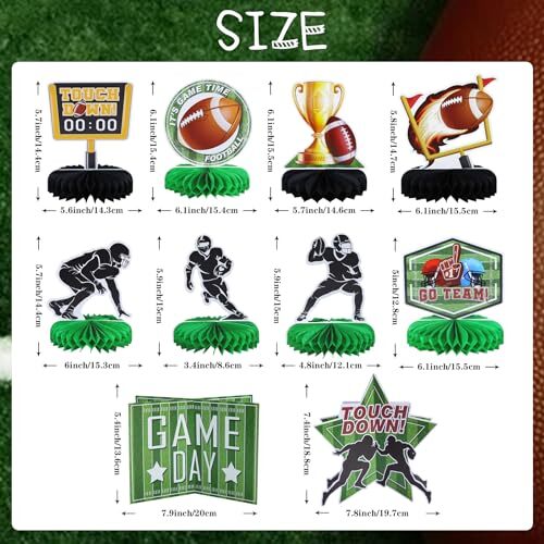 Return Policy Fast Delivery Trusted seller Football Party Decorations 10 Pieces Football Party Honeycomb Table Centerpiece Football Table Decorations for Superbowl Football Game Day Tailgate Party Favors Supplies Product Description Football Party Decorations: You will receive 8 pieces of football honeycomb table decorations and 2 pieces of standing cardstock decorations that will perfectly accent your football tailgate themed event High Quality: All pieces are double sided, made of thick high quality cardstock and paper, well made, fine texture, not easy to fade, keep the party going all season long with our football honeycomb Easy To DIY: These football table centerpieces are so easy to make, just glue the honeycomb to the card. The dimensional cardboard decorations are already pre-folded and easy to assemble. Save time and effort while still creating a festive atmosp Variety of Scenarios: Our football themed table centerpiece will let you and your friends experience a fun and exciting party, suitable for decorating for Superbowl, football themed parties, birthday parties, tailgating parties, sports events and more Guaranteed Customer Satisfaction: We are committed to providing you with the best products and customer service. If you have any questions or concerns, please feel free to contact us. Get ready to win big with our football party decorations Shipping Returns Payment Shipping Shipping is FREE to all addresses other than APO/PO boxes in the lower 48 states. All our stock ships from US-based warehouses. Shipped via USPS or UPS (depending on location and package weight) Unless stated otherwise, all orders will ship within 24-72 hours of your payment being processed. Check our feedback to see the great reviews of FAST shipping we offer. Returns Seller does not accept returns Payment We currently accept payment via eBay managed payments only. Once payment is cleared, we will dispatch your shipment within 1-3 business days. Please refer to the "Shipping" tab for more information regarding shipping speed to your destination.