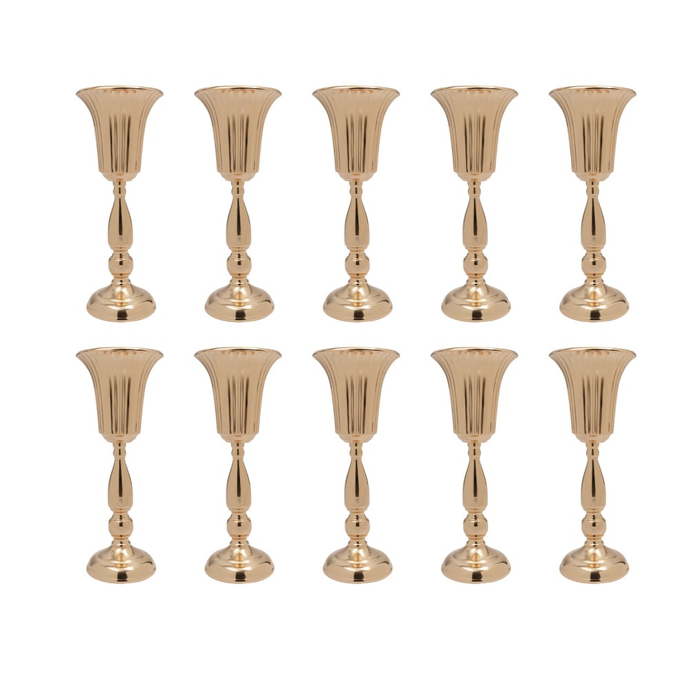 10Pcs Gold Vase Centerpiece Table Decorations - Metal Tabletop Flower Stand, Wedding Decorations Description If you want to create a romantic atmosphere or like to arrange flowers, then our items can help you to achieve it very well. It is made of iron that has a strong, durable, long life and is not easy to break. Its golden look is very high-end and functional, and can be used to spice up your surroundings with flowers, wax, or candles. Application It is the perfect decoration for weddings, parties, hotels, home scenes decoration, and daily home decoration in living rooms, study rooms, and coffee shops, etc., the top of the bouquet can be used for table decoration, home decoration, etc., is the perfect decoration for birthdays and candlelight dinners. Vase Centerpiece Trumpet Tall Flower Vase Tabletop Flower Stand 10Pcs Gold 10-Piece Gold Metal Vase Centerpiece Set for Elegant Table Decorations Transform your space into a romantic setting with our exquisite gold metal vase centerpiece set! Perfect for weddings, parties, or simply adding charm to your home, these vases bring a touch of elegance wherever they are placed. 🌹✨ High-Quality Material: Crafted from durable iron with an electroplated surface, these vases are hard-wearing, corrosion-resistant, and built to last. Romantic Ambiance: Enhance any occasion by filling these vases with flowers, creating a delightful atmosphere that will surely impress your guests. Versatile Use: Not just for flowers, these vases can also hold candles, incense, or decorative items, catering to all your styling needs. Space-Saving Design: Measuring 5 × 15.7 × 5.7 in, these vases feature a detachable design for easy storage when not in use. Value Pack: This set includes ten vases, ensuring you have enough to decorate multiple areas without feeling sparse. Elegant Aesthetic: The intricate hollow base design combined with a mermaid pedestal and trumpet shape offers a classic and refined look that fits any decor. 🎉 With their unique design and multipurpose functionality, these vases are a fantastic addition to your decor collection. Imagine hosting a dinner party or a wedding with these stunning centerpieces enhancing your tables, making unforgettable memories! Specifications: Material: Iron Color: Gold Style: European Process: Electroplated Installation Type: Tabletop, Desktop Assembly Required: Yes Number of Pieces: 10 Gross Weight: 4.3 kg / 9.48 lbs Net Weight: 4.2 kg / 9.26 lbs Package Size: 32 × 29 × 21 cm / 12.6 × 11.42 × 8.27 in Base Diameter: 12.6 cm / 5 in Opening Diameter: 14.5 cm / 5.7 in Height: 39.8 cm / 15.7 in Inside the box, you will find 10 elegant vase centerpieces and all necessary installation accessories. Usage Tips: For best results, pair these vases with fresh or faux flowers that complement your color scheme. Experiment with different arrangements to create an eye-catching display! Care & Maintenance: Cleaning is a breeze! Simply wipe the smooth surface with a soft cloth to maintain its shine and elegance. Whether it's a housewarming gift, a wedding present, or a delightful treat for yourself, this gold vase centerpiece set is sure to please. Don’t miss out on the chance to elevate your decor; order your set today and let the beauty shine at your next event! 🛍️ Payment Delivery details Terms of sales About us Contact us Payment We accept ebay payment 。 Fees such as import duties, taxes are not included in the item price or shipping costs. These charges are the buyer's responsibility. Delivery details Shipping: 2-9 working days to: USA Terms of sales We maintain high standards of excellence and strive for hundred percent customer satisfaction. Feedback is very important to us. We hope that you contact us immediately before you give neutral or negative feedback, so that we can address your concerns. It is impossible to address issues if we do not know about them! About us Your satis faction is our ultimate goal. We work hard to earn your trust and future business. Our certified technicians have tested each item before shipping. The unit comes with 1 year limited warranty on all manufacturing defects. a) If you receive a defective item, you may return it or ask for a discount. Please contact us within 14 days after you receive the package. b) What you returned must be intact and in its original packaging as re? u. Customer is responsible for shipping costs of the returned item. c) We will cover the cost of shipping back t with the shipping rate indicated in the registration page. We will send you a new unit or refund the full payment you paid. Thank you. Contact us Business Hour Business Hour: Monday To Friday: 8:30 AM to 5:00 PM (Beijing China time) Due to time zones, our reply to your questions may not be immediately. But within above working time, we will reply your email within 24 hours. If it's non-workdays, please kindly be patient and wait till Monday. Please contact us with ebay message. Please feel free to contact us if you have any questions. Monday To Friday: 8:30 AM to 5:00 PM (Beijing China time) Due to time zones, our reply to your questions may not be immediately. But within above working time, we will reply your email within 24 hours. If it's non-workdays, please kindly be patient and wait till Monday. Please contact us with ebay message. Please feel free to contact us if you have any questions. Features ★Easy installation,Easy Operation★ Feature ❤Great value with warranty❤ Brand Unbrand Warranty 5 Years Material Iron Color Gold Style European Finish Electroplated Mounting Tabletop, Desktop Assembly Required Yes Shape Bottle Type Vase Centerpiece Theme Art Base Diameter 12.6cm/5in Opening Diameter 14.5cm/5.7in Item Height 39.8cm/15.7in Item Weight 4.2 kg/ 9.26 lbs MPN Does not apply Department Adults Origin N/A Additional Parts Required No On Feb 8, 2026 at 16:33:42 PST, seller added the following information: