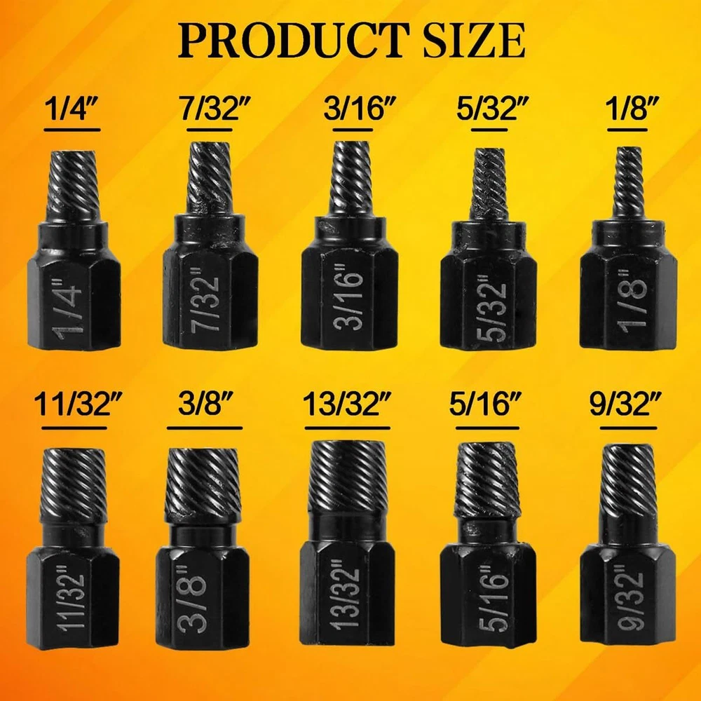 This screw extractor set is a lifesaver for removing stubborn broken bolts and stripped screws! The high-quality alloy steel construction ensures durability and rust resistance, while the hex head design provides a solid grip. The multi-spline extractors work like magic on tough fasteners, making repairs quick and easy. Perfect for DIYers and professionals alike—highly recommended!