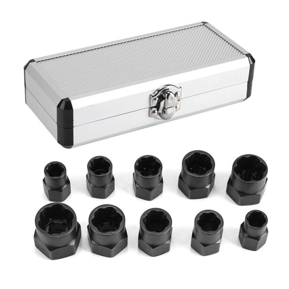 High Quality Material: Made of forged chrome vanadium steel with high hardness, these bolt extractors are sturdy and durable. Compatibility: These Remover Extractor tools can be driven with a metric spanner or socket for fast work. Bolt Removal Set: This is a set of 10 pieces nut remover set that can be used with a combination wrench adjustable for removing damaged, stripped, rusted, or painted fasteners (screws/nuts/bolts) of all types of the wrenches, pliers, vise grips, or socket. Application: These Locking Socket Tools fit hex heads sized 9, 10, 11, 12, 13, 14, 15, 16, 17, and 19mm, and fit outside hex sizes 16mm,16mm, 17mm, 19mm, 19mm, 21mm, 22mm, 24mm, 24mm, 27mm.