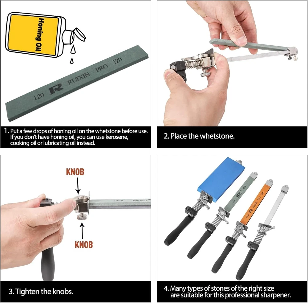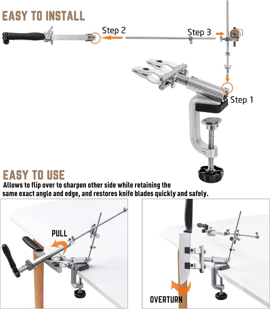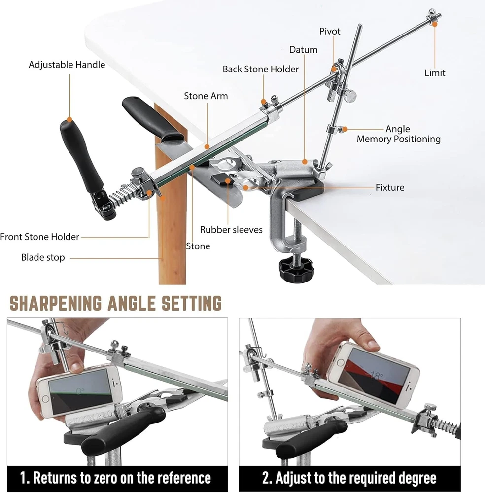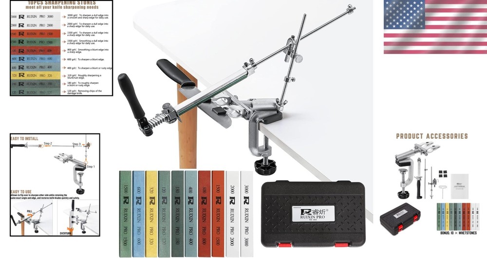 Stainless Steel RX-008 360° Knife Sharpener with G-Clamp and 12 Whetstones