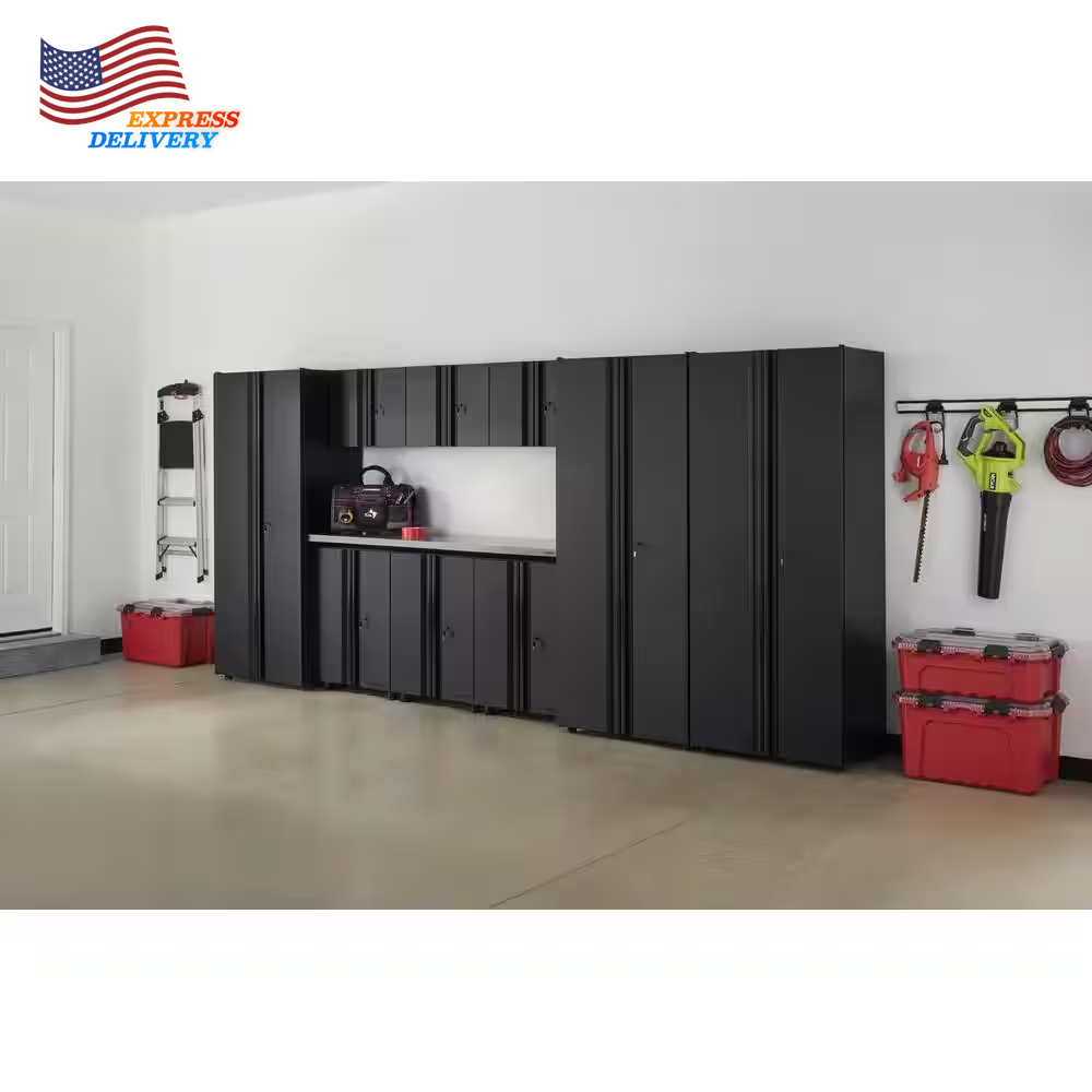 Store New Arrivals Add to Favorite View Feedback Contact 10-Piece Regular Duty Welded Steel Garage Storage System in Black Description Assembly Required Yes Assembly Type Pre-Assembled Color Family Black Color/Finish Black Features Adjustable Shelves,Worktop Grade Standard Duty Included Base Cabinet,Closet Rod,Mounting Hardware,Screws,Shelves,Wall Cabinet Material Steel Number of Pieces 10 Returnable 90-Day Style Modern Worktop Material Stainless Steel Manufacturer Warranty Lifetime Warranty. Lifetime Warranty is for Storage Cabinets only and excludes Stainless Steel Work Surface. Stainless Steel Work Surface has a 1 Year Limited Warranty. This warranty excludes incidental/inconsequential damages and failures due to misuse, abuse or normal wear and tear. This full warranty gives you specific rights, and you may also have other rights, which vary state to state. Assembled Depth (in) 19.6 in Assembled Height (in) 75.0 in Assembled Width (in) 163.5 in Pre-assembled and ready to install for fast, easy organization Black matte powder-coating helps protect against scratches Backed by Husky’s lifetime warranty Store equipment, tools and more with this Husky 10-piece garage storage system. It comes pre-assembled, allowing convenient installation. Three 30-in. lockers, three wall cabinets and three two-door base cabinets give you plenty of space. For easy opening and closing, soft-close hinges for the wall cabinet and base cabinet prevent slamming. Scratch-resistant powder-coated steel construction delivers lasting use. ABOUT US We offer the best prices around on high quality products. Our E-store includes media such as books, movies, music and games while offering electronics, toys, sporting apparel, clothing, tools, general home, garden items and more. SHIPPING We are always working hard to ensure your package arrives as soon as possible. Please understand that some factors like weather, high postal traffic, and the performance of shipping companies are outside of our control. We offer free shipping to the lower 48 states and ship within 2 business days of payment, usually sooner. We do not accept P.O. Boxes. Please provide a physical address. For shipping outside of the continental USA, we only use eBay's Global Shipping Program.The item is shipped to KY and then sent to the rest of the world. International customers are responsible for all duties and taxes. Continue to check out in order to calculate costs for shipping the item to your country. Messages regarding eBay's Global Shipping Program MUST be directed at eBay EXCLUSIVELY. RETURNS We offer a 30-Day Return Policy on items which you are not completely satisfied with. You have the option for a full-refund or an exchange of the item. No returns are available on items shipped outside of the USA. PAYMENT We accept PayPal. CONTACT US This page content is yet to come Please ad us to your favorite seller and visit again later Thank You CUSTOMER SATISFACTION We try our very best to make sure every customer is completely satisfied. If there's a problem, message us! We're happy to help. WE ACCEPT Copyright © 2021 AutoDS. | All Rights Reserved