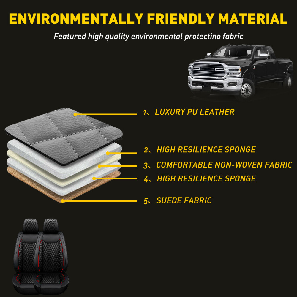 These seat covers are a game-changer for my Ram! The premium PU leather feels luxurious and comfy, while the snug fit keeps them looking sleek. Installation was a breeze, and they offer full protection against spills and wear. Perfect for families or work trucks—durable, stylish, and worth every penny!