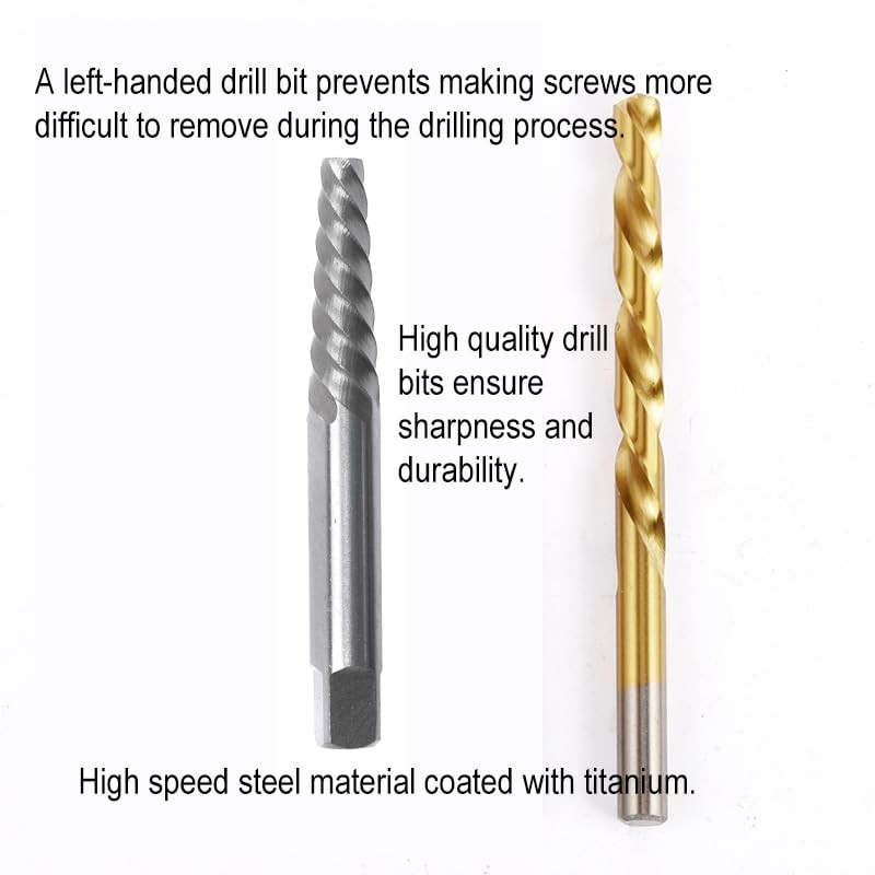 This set is a lifesaver for stripped or stuck screws! The left-hand drill bits and extractors work perfectly together, making tough jobs way easier. The hardened steel holds up well, and the case keeps everything organized. Great for DIYers and pros alike—highly recommend for any toolbox!