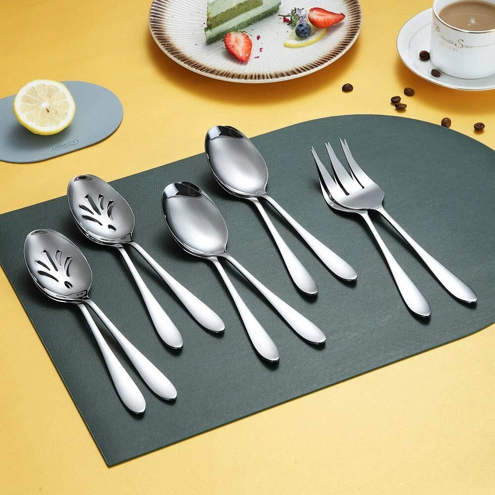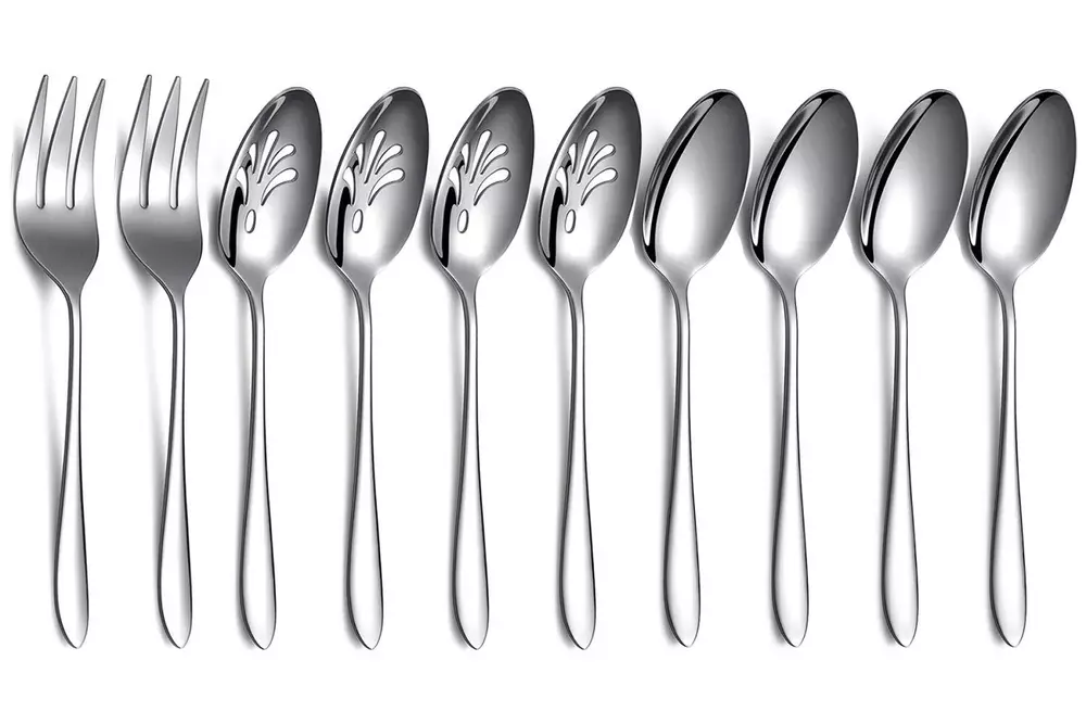 10-Piece Serving Flatware Silverware Set,Stainless Steel Serving Utensil Set,Include Slotted Serving Spoon, Serving Spoon, Serving Fork(Silver) 【10-Piece Silver Serving Set】Include Slotted Serving Spoon x 4, Serving Spoon x 4, Serving Fork x 2; 【Silver Mirror Polish】Stylish atmospheric flatware set, Let your tableware stand out,Let you eat with your family and friends,Have a wonderful meal. 【Quality 】Made of High Quality Stainless Steel, the edges are smooth and stylish, Mirror Polish, Rust proof, High hardness, Lead-free, Cadmium-free, Phthalate-free, BPA-free durable and Eco-Friendly. 【Best Gift】Perfect Ideal for Weddings,Valentine's Day,Catered events,party,Family reunion,Upscale catering,Theme restaurant, or home dinner, Perfect Gift for Wedding Housewarming Birthday Mother's Day Restaurant, or home dinner, and much more. 【Eco-friendly & Easy to Clean】This is a reusable environmentally-friendly tableware,Durable and healthy for everyday use, Dishwasher Safe.