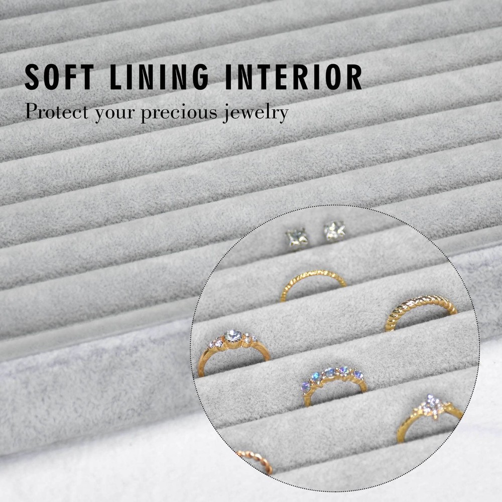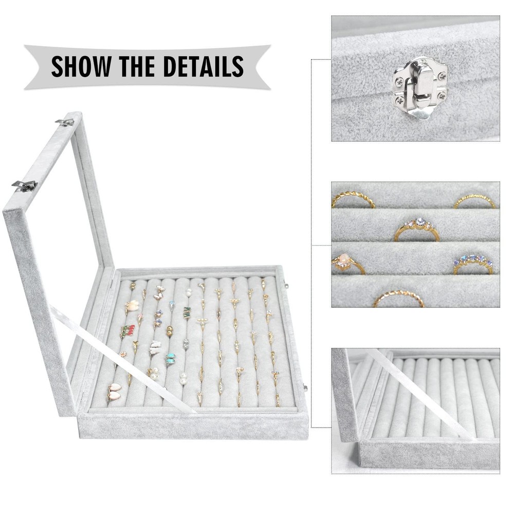 Regarding us: We focus on product quality and also pay attention to product details. We hope to provide you with high-quality and affordable products. At the same time, we also hope to provide more services to meet our users. Please trust us, it will be a good choice. Product features: High quality velvet jewelry box, finely crafted, structurally sturdy, and aesthetically pleasing. The elegant Jewel Box perfectly displays your jewelry while protecting them from dust and scratches. The transparent glass cover makes it easy for you to quickly find the jewelry you are looking for. Perfect for showcasing your jewelry at a jewelry store or storing jewelry at home. You can also give it as a holiday gift to someone in need. Product specifications: Material: High grade velvet, glass, medium density fiberboard. Windows: Glass Size: 13.9 x 9.6 x 2 inches Packaging list: 1 x Jewelry display tray. Product features: The 10 slot gray jewelry display organizer is made of composite boards, wrapped in soft long velvet both inside and outside. It feels softer and more comfortable than short velvet, and can effectively protect your precious jewelry and accessories from scratches and wear. Design concept: The 10 slot jewelry display tray has 10 long slots, all of which are covered with very soft velvet. Each slot can store approximately 15 rings or earrings. Through the transparent glass cover design, you can quickly discover the rings, earrings, brooches, buttons, and other valuable items you are looking for. Two safety locks can effectively prevent the cover from being easily opened. Usage scenario: The 10 slot accessory display tray is very suitable for displaying jewelry and accessories in retail stores or display cabinets, and is also suitable for home use, making jewelry neat and orderly. It can also be given as a gift to women on Valentine's Day, Mother's Day, Thanksgiving, Christmas, birthdays, or other holidays. Focusing on quality: We have strict standards for material selection and clear inspection standards in the production process to provide customers with satisfactory products as much as possible. The accessory display storage box measures approximately 13.8 x 9.5 x 2 inches and is suitable for display cabinets, dressing tables, or drawers. Sincere Service: We focus on product quality and hope that our products can meet your needs. At the same time, we also hope to provide you with more services. Please feel free to contact us if you have any needs.