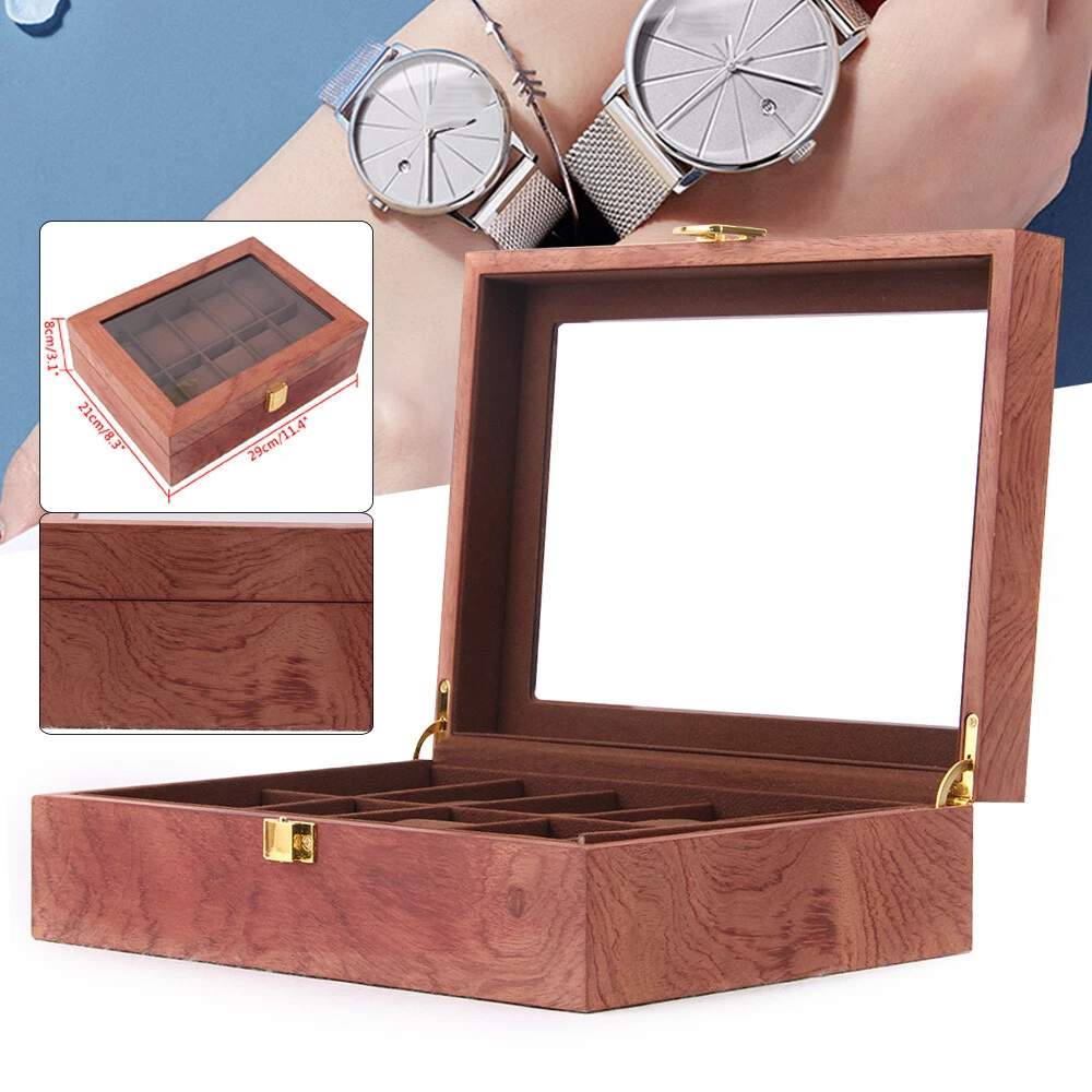 Jewelry Watch Wood Case Display Box 10 Slots Storage Box Rosewood Grain Gift 10-Slot Watch Box Glass Top Vintage Display Jewelry Storage Organizer Case Wood Welcome~ Deatail: Material:Density Board+Velvet Cloth Colors:Rosewood Grain Type:10 Slots 10 Slots Size:about 26.5*20*8.2cm Weight:1.6kg Highlights: High quality Density Board watch display case with exquisite workmanship. Best for displaying your watches whatever in a shop or on your dressing table. Designed with a clear transparent qualify glass top lid to enable easy viewing of the watches inside and keep the watches dust free. Items included: 1 x Watch Display Case tu1 Payment Delivery details Terms of sales About us Contact us Payment We accept ebay payment 。 Fees such as import duties, taxes are not included in the item price or shipping costs. These charges are the buyer's responsibility. Delivery details Shipping: 2-9 working days to: USA Terms of sales We maintain high standards of excellence and strive for hundred percent customer satisfaction. Feedback is very important to us. We hope that you contact us immediately before you give neutral or negative feedback, so that we can address your concerns. It is impossible to address issues if we do not know about them! About us Your satis faction is our ultimate goal. We work hard to earn your trust and future business. Our certified technicians have tested each item before shipping. The unit comes with 1 year limited warranty on all manufacturing defects. a) If you receive a defective item, you may return it or ask for a discount. Please contact us within 14 days after you receive the package. b) What you returned must be intact and in its original packaging as re? u. Customer is responsible for shipping costs of the returned item. c) We will cover the cost of shipping back t with the shipping rate indicated in the registration page. We will send you a new unit or refund the full payment you paid. Thank you. Contact us Business Hour Business Hour: Monday To Friday: 8:30 AM to 5:00 PM (Beijing China time) Due to time zones, our reply to your questions may not be immediately. But within above working time, we will reply your email within 24 hours. If it's non-workdays, please kindly be patient and wait till Monday. Please contact us with ebay message. Please feel free to contact us if you have any questions. Monday To Friday: 8:30 AM to 5:00 PM (Beijing China time) Due to time zones, our reply to your questions may not be immediately. But within above working time, we will reply your email within 24 hours. If it's non-workdays, please kindly be patient and wait till Monday. Please contact us with ebay message. Please feel free to contact us if you have any questions. Brand ( 品牌 ) SENDERPICK Warranty 3 Years Featurtes Made of high quality material, Durable OE/OEM Part Number Does not apply MPN ( MPN ) n/a UPC Does not apply Material Density Board+Velvet Cloth Colors Rosewood Grain Size about 26.5*20*8.2cm Type 10 Slots Weight 1.6Kg Color Brown Capacity 8-12 Watches Brand SENDERPICK MPN Does not apply