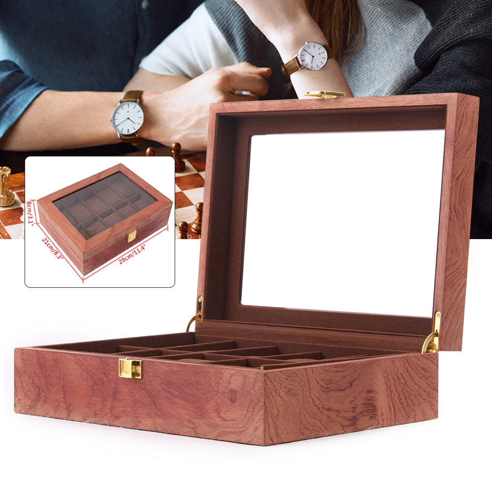 This watch box is absolutely stunning! The rosewood grain looks elegant, and the glass top lets me admire my collection without dusty worries. The soft velvet lining keeps my watches scratch-free, and the 10 slots fit all my favorites neatly. Perfect size for my dresser—feels sturdy and high-end. Great gift for watch lovers!