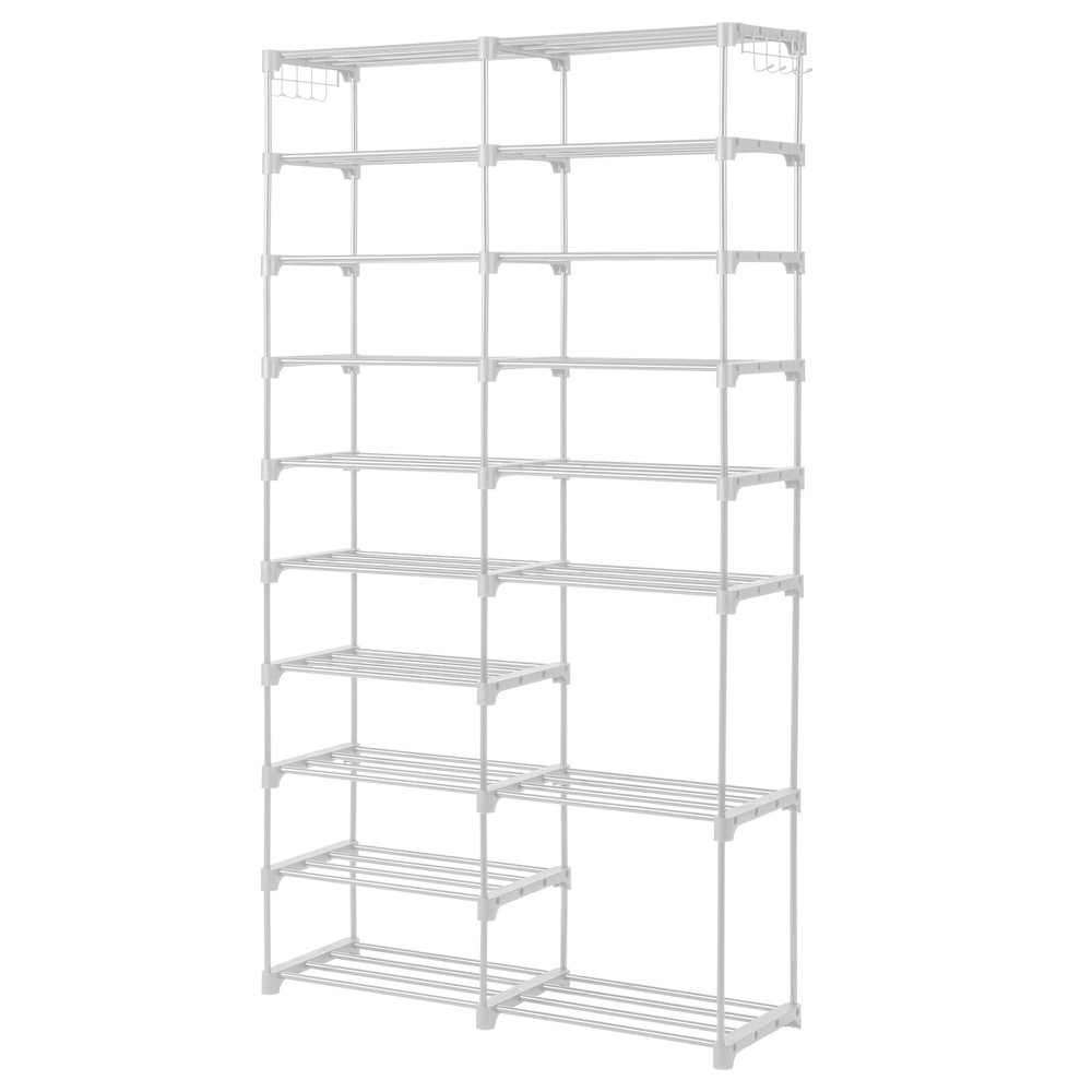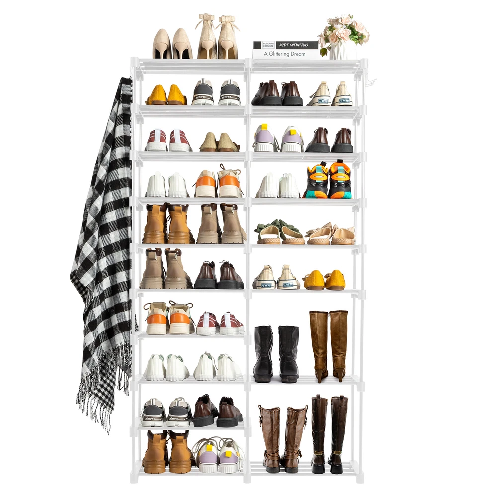 10-Tier White Shoe Rack with Iron Frame and Non-Woven Shelves 85x30x158cm