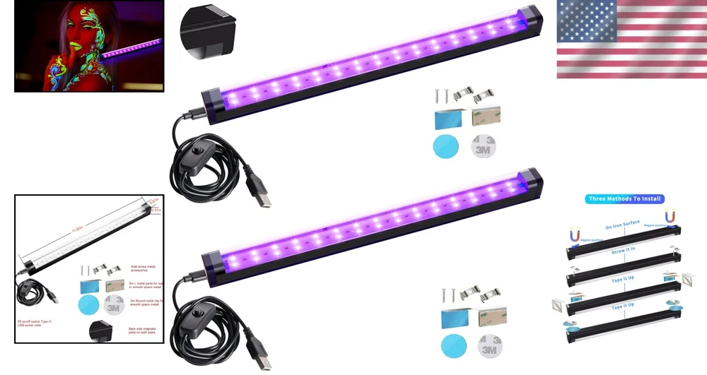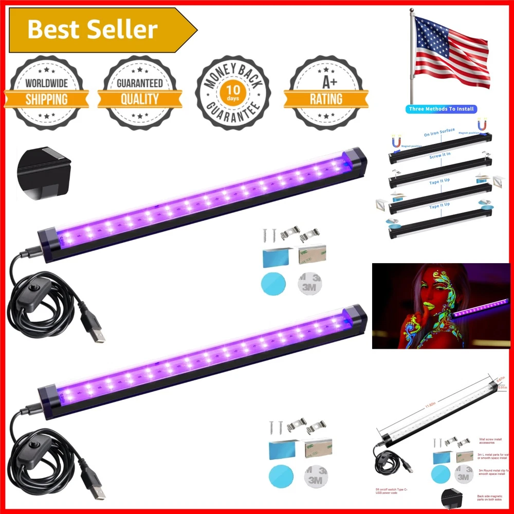 10W LED Black Light Bar 1ft for Glow Parties and Fluorescent Displays - 2 Pack ‹ › ‹ › ‹ › ‹ › ‹ › ‹ › ‹ › ‹ › ‹ › 10W LED Black Light Bar - 1ft Glow Party Essentials Illuminate your glow parties and enhance fluorescent displays with our premium 10W LED Black Light Bars. This stylish and compact design perfectly caters to all your lighting needs, delivering eye-catching brilliance for any occasion. Product Features: Versatile Installation: Choose from magnetic install, wall L install, under-counter clips, or wall screw installations—customizing your setup has never been easier. Wide Application: Ideal for curio presentations, cabinets, artwork, tapestries, and festive celebrations like Christmas, Halloween, and birthday parties. Safety First: Engineered with a full PC DC 5V Type C-USB setup and an on/off switch on the cord, ensuring low temperature operation with 395-405nm LEDs for safe, harm-free illumination. Portable Design: Each mini black light bar is 1ft long and perfect for handheld use, making it extremely convenient for on-the-go fun. Indoor & Outdoor Use: With a USB port compatibility, you can connect to power banks and light up any outdoor gathering with ease. What’s Included: 2 Black Light Fixtures 2 x 5ft Type C-USB Cables 2 Sets of 3M-L Clips 2 Sets of Round Clips 2 Sets of Screw Wall Brackets Why Choose Our LED Black Light Bars? Elevate your party atmosphere with our upgraded mini black light bars designed to captivate your guests. Whether it’s for a fun glow party, showcasing fluorescent artwork, or enhancing decorative displays, our lights provide vibrant illumination while ensuring safety and portability. Don't miss the opportunity to light up your events and create unforgettable experiences. Order your 2-Pack of 10W LED Black Light Bars today! Shipping Free & Fast Shipping - We offer free shipping to most of the USA with a normal delivery time of 3-7 days. However, due to the current situation, additional delivery time (up to 3 weeks) may be required for some items. Alternative Carriers - We may use alternative carriers (e.g. USPS, FedEx, UPS, etc.) to ensure your package arrives safely and on time. Due to the use of multiple carriers, we are unable to provide a tracking number automatically. Handling Time - Orders are processed and shipped within 1-2 business days of receiving cleared payment. Shipping Restrictions - Shipping to Alaska, Hawaii, Puerto Rico, Guam, and other US territories may incur shipping charges or delivery restrictions. Please contact us before ordering, or your order can be refunded/cancelled. State Restrictions - There may be restrictions based on your state of purchase. For example, certain items may not be shipped to California due to state regulations. Contact for Tracking Updates - If you require tracking updates or have any concerns about the delivery of your order, please feel free to contact us, and we will be happy to assist you. Return 30-Day Hassle-Free Returns - We want you to be completely satisfied with your purchase. If you are not, you can return the item within 30 days of receiving it for a full refund or exchange. Easy Return Process - To start a return, simply contact us and we will provide you with a prepaid return shipping label and detailed instructions. Restocking Fee - There are no restocking fees for returns. However, the buyer is responsible for return shipping costs if the return is not due to a seller's error. Refund Processing Time - Refunds will be processed within 5 business days of receiving the returned item in its original condition. Payment We accept all major credit cards, PayPal, and Apple Pay for your convenience. Your payment information is secure and encrypted to ensure a safe and seamless transaction. Please complete your payment within 3 days of purchase to avoid any delays in shipping. Feedback Your feedback is extremely important to us. We strive to provide the best products and customer service possible. If you are satisfied with your purchase, please take a moment to leave us a positive review. If you have any concerns or issues with your order, please contact us before leaving negative feedback. We are committed to resolving any problems and ensuring your satisfaction. Contact Us If you have any questions or concerns, please feel free to reach out to our customer support team. You can contact us through the eBay messaging system. We are available Monday to Friday, 9:00 am to 5:00 pm EST, and we will do our best to respond to your inquiry within 24 hours. Buy it now and enjoy a pleasant shopping experience! UPC: 631344844946 Size: 1ft Item Height: LED Blacklight Strip Lights Lumens: LED Blacklight Strip Lights Power Consumption: 10W Unit Quantity: 2 Occasion: Birthday,Christmas,Halloween,Party,Glow Party Features: Portable,USB Port,On/Off Switch,Low Temperature,Multifunctional Installation Light Color: Black Control Style: Push Button Department: Unisex Baby & Toddler,Kids,Adults Theme: Not Set Room: Bedroom,Living Room,Kids Room,Classroom Material: Plastic,Vinyl,Polycarbonate Character: Not Set Labels & Certifications: Not Set Brand: Unbranded Type: Black Light Bar Lighting Technology: LED Light Shape: Rectangular Installation Area: Indoor & Outdoor Sensor Type: Light Color: Black Power Source: Corded Electric Cord Color: Not Set Number of Settings: Not Set LED String/Strip Type: Not Set Energy Star: Not Set MPN: Not Set EC Range: Not Set Voltage: 5V LED Chip Code: Not Set Output Voltage: Not Set Manufacturer: Not Set Character Family: Not Set IP Rating: Not Set Amperage: Not Set Number of Lights: 30 Country/Region of Manufacture: Not Set Style: Modern Color Temperature: Not Set Bulb Life Hours: Not Set Model: Not Set Unit Type: Unit