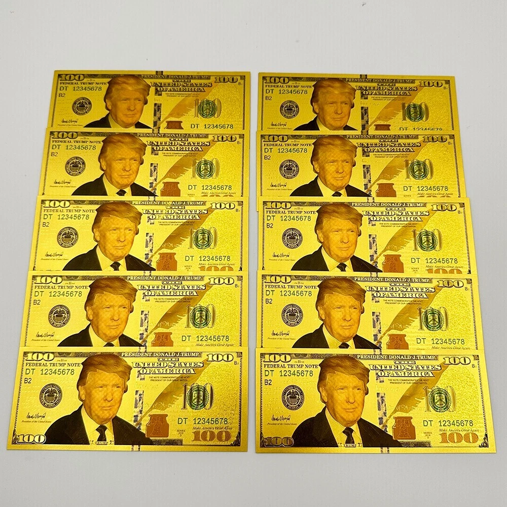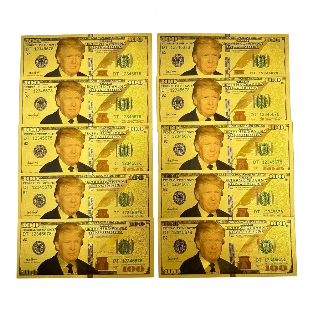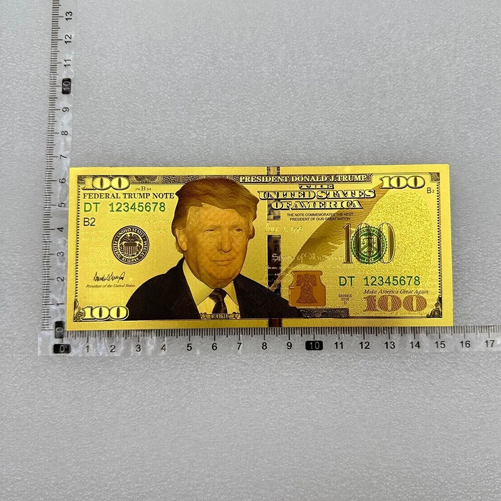 Add this unique and rare collection of 10 commemorative $1000 dollar bills to your collection. These gold foil non-currency banknotes feature the slogan "Let's Make America Great Again" and the portrait of Donald Trump, the 2024 United States President. The bills are made of high-quality plastic material and come in a size of 15.5*6.5 cm. Each bill is colorized with a beautiful gold color and features the President's campaign logo. This collection is perfect for political enthusiasts and collectors of historical memorabilia. The package content includes 10pcs about 40g in weight, and the bills are manufactured in China. Don't miss the chance to own this amazing collection! Item Description size:15.5*6.5 cm weight:each piece about 4 g package:safe packing 1. The colors may be a bit difference as the picture showed, your understanding is appreciated. 2. Please make sure you do not mind before you bid. 3. If you need more quantity, please contact us. About shipping 1. If you purchase multiple orders that require payment of shipping costs, please contact us to combine shipping costs, you only need to pay the shipping costs once. 2. If you purchase an order of more than US$300 at a time, we can upgrade the shipping method to UPS or TNT for free. *. The standard mode of transportation can track information throughout the journey. The transportation time is generally 7-19 days. *. The shipping time for UPS, Fedex, DHL, TNT is generally 3-10 days. Return 1.Change of mind/ Unwanted item(s) Customer can return the unwanted order(s) within 30 days upon receipt. Item(s) must be returned in brand new, resalable condition. 2.Item Damaged During Transit If item has been damaged during transit, please send us clear photos of the damaged item within 48 hours upon receipt. We'll offer a replacement or issue a full refund. 3.Item Lost During Transit Tracking number will be provided once item has been shipped. If item has been confirmed lost during transportation, Please contact us, we will arrange a replacement or a refund for the confirmed lost case. Feedback 1. we depend on our customer satisfaction to succeed, Therefore, your feedback is extremely important to us. 2. If you are satisfied with our items, please leave us 5 stars feedback. 3. Pls contact us before leaving any negaive of neutral feedback. we will do our best to solve the problem Service quality * Reply your inquiry in 24 hours. * Provide you with samples or clear pictures for your reference.^_^ * Recommend similar items for you to compare with. * If you have no forwarder ,we will arrange our cooperative forwarder for you. * Solve problems for you. About Customized Support customization of various types of gold banknotes. Please contact customer service if needed. Our store specializes in customizing gold banknotes. Customers are welcome to inquire. The minimum number of customized coins is 500pcs. Our store can provide you with design drafts.