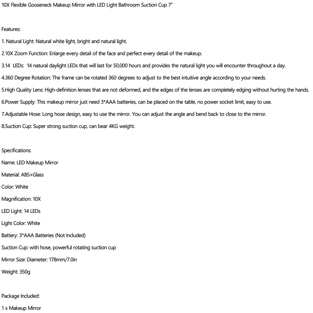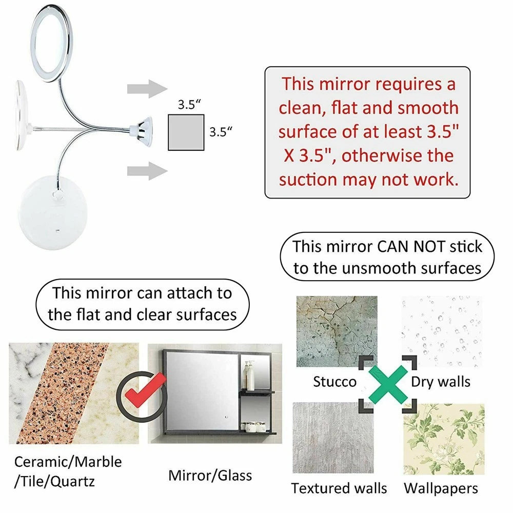 ✨10X Flexible Gooseneck Makeup Mirror with LED Light Bathroom Suction Cup 7"