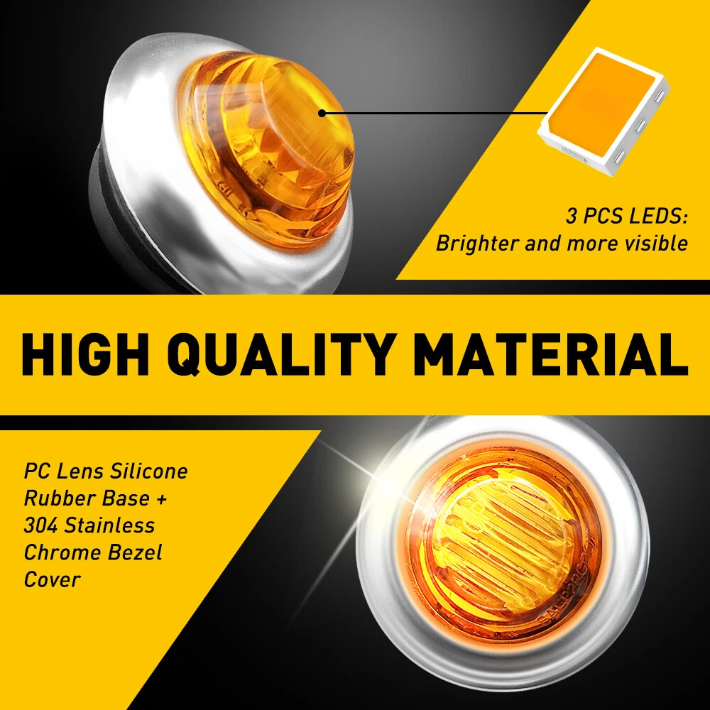 Specifications: Product packaging: bag packaging LED number: single 3LED Light shell color: red light red shell, yellow light yellow shell, white light transparent shell, blue light blue shell, green light green shell Mode: black line negative, yellow line positive yellow light, red line positive red light, white line positive white light, blue line positive blue light, green line positive green light Suitable voltage: 12V Waterproof grade: IP67 Service life: 50000+hours Usage: can be used as signal light, tail light, running light, etc., to improve driving safety. Use of models: trucks, vans, all kinds of work trucks, etc. Features: 10X Red & 10XAmber Side Marker Signal Tail Running Round Light For Trailer Truck Specifications: Product packaging: bag packaging LED number: single 3LED Light shell color: red light red shell, yellow light yellow shell, white light transparent shell, blue light blue shell, green light green shell Mode: black line negative, yellow line positive yellow light, red line positive red light, white line positive white light, blue line positive blue light, green line positive green light Suitable voltage: 12V Waterproof grade: IP67 Service life: 50000+hours Usage: can be used as signal light, tail light, running light, etc., to improve driving safety. Use of models: trucks, vans, all kinds of work trucks, etc. Features: *Good sealing, waterproof, low energy consumption, high brightness, long service life Product includes: red light * 10 yellow light * 10 (each light with 2 screws) Item Specifics Brand Unbranded Material Plastic Type side light Items Included Red light*10 Yellow light*10 Universal Fitment Yes Features Waterproof Manufacturer Warranty 1 Year Fitment Type Direct Replacement Suitable For Side Marker Light Service life 50000 Number of Bulbs 3LED Light Color Amber,red Voltage 12 V Lighting Technology LED Bulb Life Hours Up to 5,000 Hours Model SUVs, UTVs, ATVs, pickups, trucks, ships, etc. Payment Returns DESCRIPTION PAYMENT SHIPPING RETURN POLICY CONTACT US Shop Category Store Home LED Headlight ◈ H4 ◈ H13 LED FogLight ◈ H10 / 9145 / 9140 LED Reverse Light ◈ T15/921/W16W LED Side Marker Light Car Parts & Accessories Tail Light assemblies Other Hot Item Picture New List Item Canbus 921 912 LED Up Back Light Bulbs 6000K 4pcs White T15 Halogen Replacement USD 23.74 For 2015-20 Ford F150 Lens Smoke LED 3RD Third Rear Brake Tail Light Cargo Lamp USD 25.64 AUXITO H13 9008 LED Headlight Kit Bulbs 1000000LM Hi/Low Beam Super Bright White USD 49.39 LED Headlight High/Low Beam+Fog Light Kit for 2005 Ford 2006-2014 F150 F250 F350 USD 24.69 Rear Driver Door Window Bezel Switch Trim Panel Cover Fit Toyota Yaris 2012-2014 USD 19.94 Help & Info Payment Policy Shipping Policy Return Policy FAQ About Us 10X Red & 10XAmber Side Marker Signal Tail Running Round Light For Trailer Truck Specifications: Product packaging: bag packaging LED number: single 3LED Light shell color: red light red shell, yellow light yellow shell, white light transparent shell, blue light blue shell, green light green shell Mode: black line negative, yellow line positive yellow light, red line positive red light, white line positive white light, blue line positive blue light, green line positive green light Suitable voltage: 12V Waterproof grade: IP67 Service life: 50000+hours Usage: can be used as signal light, tail light, running light, etc., to improve driving safety. Use of models: trucks, vans, all kinds of work trucks, etc. Features: *Good sealing, waterproof, low energy consumption, high brightness, long service life Product includes: red light * 10 yellow light * 10 (each light with 2 screws) Payment Returns All rights reserved. On Nov 12, 2024 at 12:44:56 PST, seller added the following information:
