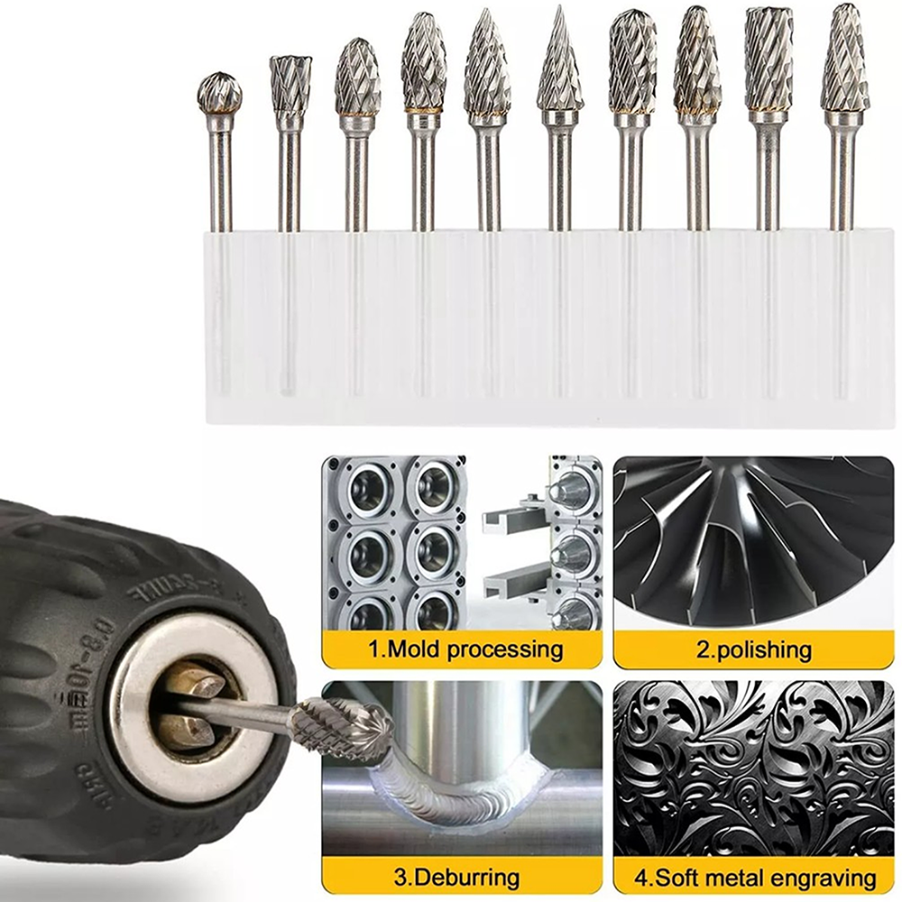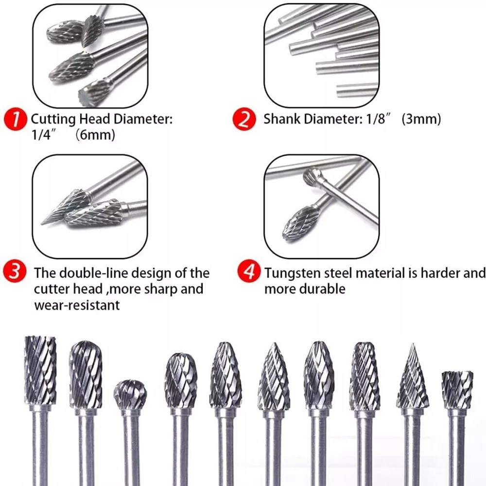 These tungsten carbide burr bits are fantastic—durable, sharp, and perfect for detailed carving and cutting. The 1/8" shank fits most rotary tools, and the double-cut design makes work smooth and efficient. They handle tough materials easily, and the quality is top-notch. Fast shipping and great customer service make this purchase a win!
