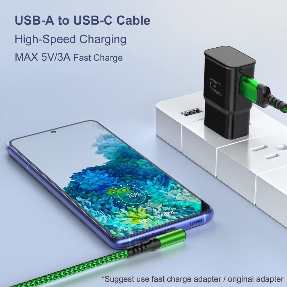 USB C Cable 10Ft, Agtray 4-Pack Long Braided USB a to USB c 90 Degree Plug Type C Right Angle Fast Charging Cord Compatible for Samsung Galaxy S23 S22 S21 S20 Note20, Pixel 7 6 (Red Blue Purple Green) ▷【Long Right Angle USB C Cable】- The USB-C 90 degree connector design is convenient to play games or watch videos while charging, reduce bending and prolong the service life of USB C cable. 10 feet extra-long length can let you play phones freely while charging, you can lie on the couch/bed or use in the car. *NOTE: Do NOT fit for thick phone case, allowed thickness of phone case is 0.05 inch. ▷【USB-C Broad Compatibility】- Works with USB-C port devices. Compatible for Samsung Galaxy S23/S22/S21/S20/S10/S9/S8, Galaxy Z Flip 3/Z Fold 3, Note 20/Note 10/Note 9/Note 8, Galaxy A51/A50s/A70/A70s/A71/A80/A90; LG G5/G6/G7/V20/V30/V40/V50, Stylo 4/5; Pixel 7/6/5/4/3/3a/2 XL, Moto Z/Z play/Z2/Z2 play/Z3; Also compatible with iPad Pro/iPad Air 5 4/iPad mini 6, Switch and more USB Type-C tablets/devices. ▷【Fast Charging Type C Cord】- This USB-A to USB-C cable supports safe and high-speed charging at up to 3A/60W max, much faster than normal cables. Data transfer speed of USB 2.0 port up to 480mb/s, can transfer large files like HD photos or movies quickly. *NOTE: Charging with a Fast Charge Adapter or Original Adapter is recommended. ▷【Durable & Reliable Cable】- Premium nylon braided threading around the cable so that adds additional durability and tangle-free. Metal end and strengthen tail of connectors are of decent quality with a 10000+ bend tested, no easy to break and crack. ▷【What You Get】- 4 pack 10 feet braided USB-A to USB-C 90 degree angle cables, our friendly customer support. If you have any concerns about our product please tell us directly via Amazon. ▷【Long Right Angle USB C Cable】- The USB-C 90 degree connector design is convenient to play games or watch videos while charging, reduce bending and prolong the service life of USB C cable. 10 feet extra-long length can let you play phones freely while charging, you can lie on the couch/bed or use in the car. *NOTE: Do NOT fit for thick phone case, allowed thickness of phone case is 0.05 inch. ▷【USB-C Broad Compatibility】- Works with USB-C port devices. Compatible for Samsung Galaxy S23/S22/S21/S20/S10/S9/S8, Galaxy Z Flip 3/Z Fold 3, Note 20/Note 10/Note 9/Note 8, Galaxy A51/A50s/A70/A70s/A71/A80/A90; LG G5/G6/G7/V20/V30/V40/V50, Stylo 4/5; Pixel 7/6/5/4/3/3a/2 XL, Moto Z/Z play/Z2/Z2 play/Z3; Also compatible with iPad Pro/iPad Air 5 4/iPad mini 6, Switch and more USB Type-C tablets/devices. ▷【Fast Charging Type C Cord】- This USB-A to USB-C cable supports safe and high-speed charging at up to 3A/60W max, much faster than normal cables. Data transfer speed of USB 2.0 port up to 480mb/s, can transfer large files like HD photos or movies quickly. *NOTE: Charging with a Fast Charge Adapter or Original Adapter is recommended. ▷【Durable & Reliable Cable】- Premium nylon braided threading around the cable so that adds additional durability and tangle-free. Metal end and strengthen tail of connectors are of decent quality with a 10000+ bend tested, no easy to break and crack. ▷【What You Get】- 4 pack 10 feet braided USB-A to USB-C 90 degree angle cables, our friendly customer support. If you have any concerns about our product please tell us directly via Amazon. Shipping from the USA All of our products are shipped from the USA, ensuring quick delivery to your destination. Payment We offer the following payment methods: PayPal, credit card, bank transfer, and eBay's secure payment system. Free Shipping & Free Returns Shipping within the USA is FREE. Additionally, any return is absolutely free for you. Risk-Free Purchase You have the option to return an item within 30 days without any justification. We cover the return shipping costs! Fast Shipping We ship immediately upon receipt of payment. Generally, the package is delivered within 2-3 days in the USA. If it takes longer, we will contact you. Quality and Costs Made in Europe, USA, China No customs fees or additional charges Total satisfaction guarantee Invoice with declared VAT available upon request in .pdf format Feedback Your feedback is very important to us. After you pay for your purchase, you will automatically receive positive feedback from us.