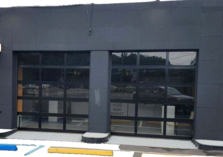 PLEASE ALLOW 15 BUSINESS DAYS FOR SHIPPING ON THIS ITEM FULL VIEW MODERN GARAGE DOOR WITH 5MM NON INSULATED CLEAR GLASS SIZE : 10 FT WIDE BY 10 FT TALL COLOR : MATT BLACK ANODIZED GLASS : CLEAR TEMPERED GLASS SECTIONS : 5 WINDOWS PER SECTION : 3 COMES COMPLETE WITH ALL MOUNTING HARDWARE TRACKS SPRINGS