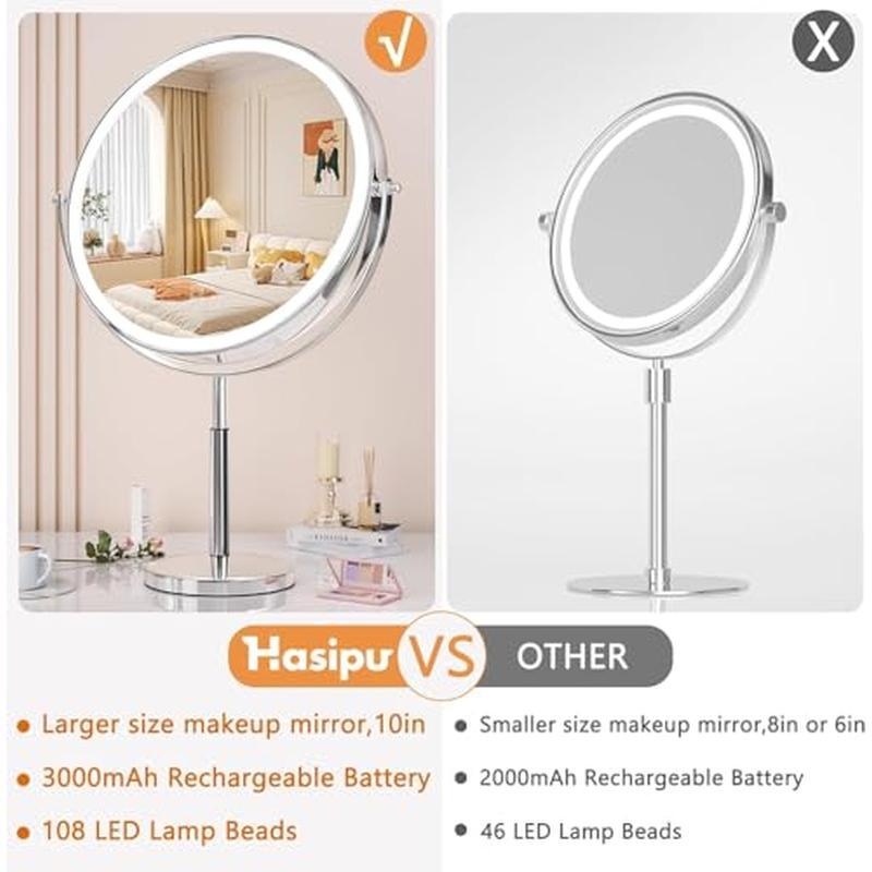 You may also like Simple Design Computer Writing Desk W/ Shelves Durable Compact Easy Assembly New 36.11 USD 38.01 USD Free shipping 5% off Eco-Friendly Computer Desk W/ CPU Shelf Two Drawer Storage Home Office Portable 39.01 USD 41.06 USD Free shipping 5% off 30ft Heavy Duty Waterproof 10/3 30A RV Extension Cord TT-30 Plug UL Listed New 37.06 USD 39.01 USD Free shipping 5% off Rechargeable Wall Mounted Lighted Makeup Mirror 10X Magnifying 3 Color Lights US 38.88 USD 40.93 USD Free shipping 5% off 36in Four Shelf Adjustable Utility Wire Shelving Stainless Steel Storage Rack US 59.48 USD 62.61 USD Free shipping 5% off 10ft Graphite Jig Fishing Rod Lightweight Crappie Pole High Sensitivity Guides 36.08 USD 37.98 USD Free shipping 5% off Handmade Pirate Treasure Chest Vintage Wooden Storage Trunk Lock Keys Decor Box 59.56 USD 62.69 USD Free shipping 5% off 18x24 Picture Frames Set of 5 Posters Certificates Documents Wall Mount Display 59.83 USD 62.98 USD Free shipping 5% off Compact Portable Ironing Board Tabletop Space-Saving Folds Flat Easy Storage New 31.4 USD 33.05 USD Free shipping 5% off 4 Tier Portable Office Workstation Shelving Modern Metal Storage Computer Desk 93.62 USD 98.55 USD Free shipping 5% off Modern Office Computer Desk W/ Storage Shelves Compact Home Workstation Desk New 54.23 USD 57.08 USD Free shipping 5% off 12 Cup Coffee Maker Glass Carafe Auto Pause Pour Easy Clean Dishwasher Safe New 25.64 USD 26.99 USD Free shipping 5% off About this item - : Unlike the usual 6-inch or 8-inch round lighted makeup mirrors, Hasipu Mirror stands out with its large 10-inch diameter. This larger size provides a broader viewing area, letting you see more of your face at once. It's perfect for detailed makeup application, hairstyling, and skincare routines. With this mirror, you can say goodbye to cramped spaces and enjoy a more comfortable beauty experience. - : This lighted vanity mirror with lights comes with a 3000 mAh rechargeable lithium battery, offering longer life and eliminating the need for frequent battery changes. The package includes a USB Type-C charging cable (charger not included), giving you convenient and flexible charging options. Charge it up, and you're set for wireless use without worrying about cords. : Our makeup mirror with lights features three lighting modes: white light, warm light, and natural light. A simple press of the button switches between the color temperatures, allowing you to choose the lighting that suits your needs. The light-up wall mirror has 108 high-quality LED beads for optimal brightness. You can also adjust the brightness level by pressing and holding the button for stepless dimming. & - : The height can be adjusted up to 18 inches, allowing you to position the mirror at the perfect angle for your routine. The swivel mirror rotates 360 degrees, offering a full range of motion to find your ideal viewing angle. When you're done, you can fold it back against the wall to save space. This versatility makes it ideal for any bathroom or vanity setup. - : The nickel bedroom mirror for wall offers both 1X and 10X magnification. The 1X side is great for general makeup application and hairstyling, while the 10X side is perfect for precise tasks like applying eyeliner or tweezing. To avoid dizziness, keep your face within 6 inches of the 10X magnifying mirror. This dual-sided design gives you flexibility for both detailed work and broader views. Brand Hasipu Room Type Bathroom, Bedroom Shape Round Product Dimensions 5"L x 18"W Frame Material Aluminum You may also like Simple Design Computer Writing Desk W/ Shelves Durable Compact Easy Assembly New 36.11 USD 38.01 USD Free shipping 5% off Eco-Friendly Computer Desk W/ CPU Shelf Two Drawer Storage Home Office Portable 39.01 USD 41.06 USD Free shipping 5% off Machine Washable Non Slip Kitchen Rugs Set Absorbent Floor Mats Entrance Hallway 74.44 USD 78.36 USD Free shipping 5% off Cordless Angle Grinder 18V Battery Powered Metal Tool Adjustable Handle Green 55.09 USD 57.99 USD Free shipping 5% off 73 Compartment Tool Storage Box Organizer W/ Trays Durable Plastic Structure New 26.27 USD 27.65 USD Free shipping 5% off Luxury Bath Sheet Set 2 Soft Absorbent Cotton Terry Towels Hotel Quality 35x66In 129.15 USD 135.95 USD Free shipping 5% off Wood Jewelry Display Riser Set 5pcs Hexagon Stand Rings Necklaces Earrings New 42.15 USD 44.37 USD Free shipping 5% off 3-In-1 Coat Rack Shoe Bench Organizer 9 Hooks Storage Industrial Easy Assembly 69.44 USD 73.09 USD Free shipping 5% off Pentero 29 Inch Tall Fireclay Pedestal Bathroom Sink Stand Modern Fixture New 75.05 USD 79.0 USD Free shipping 5% off Touchscreen 2-Slice Toaster Quick View Function 30 Sec Control Sleek Design New 51.16 USD 53.85 USD Free shipping 5% off Carbon Steel Non-Stick Stir Fry Pan/Wok Easy Clean Soft Handle Healthy Cooking 27.81 USD 29.27 USD Free shipping 5% off Stainless Steel 2-Slice Toaster LCD Countdown Defrost Reheat Bagel Functions New 67.01 USD 70.54 USD Free shipping 5% off
