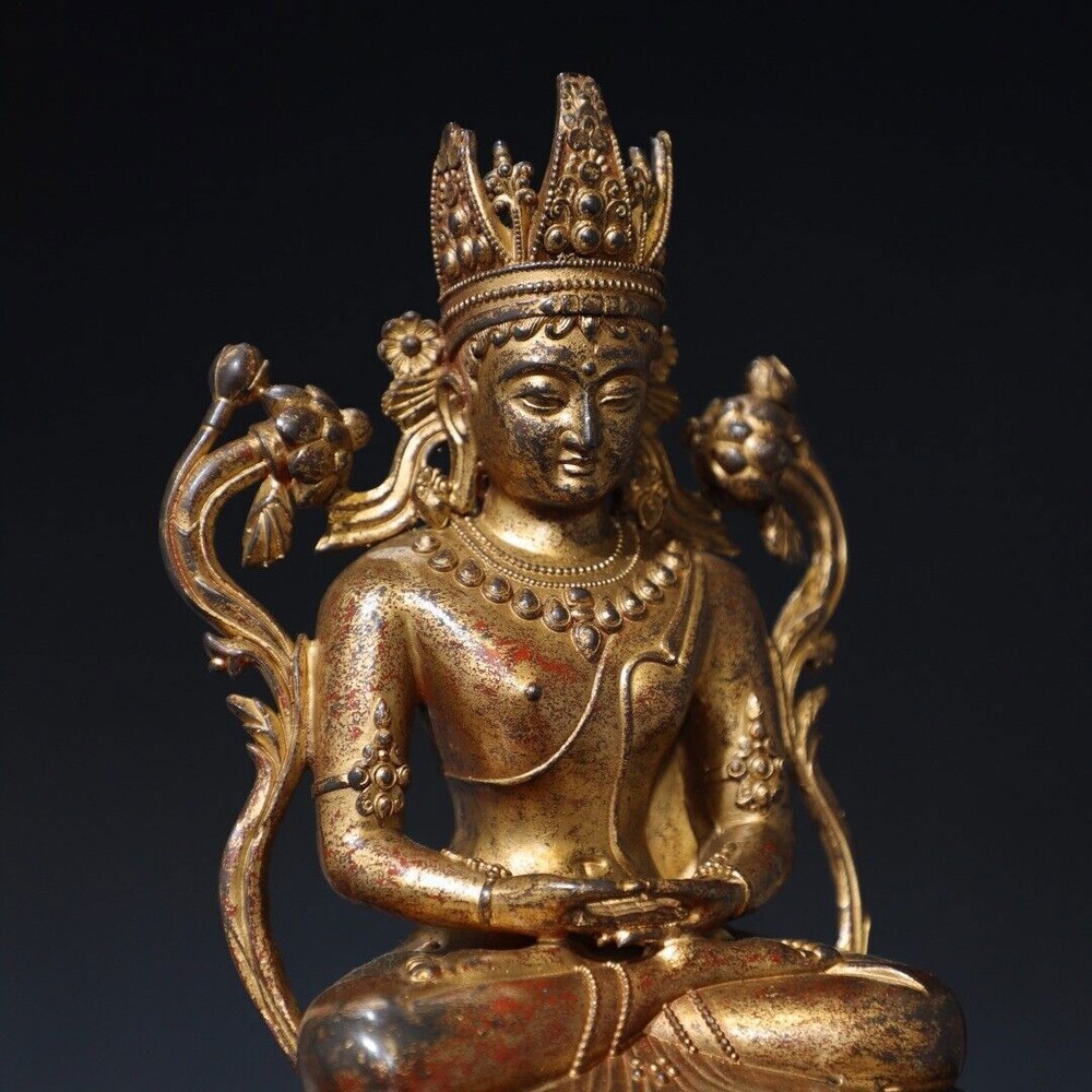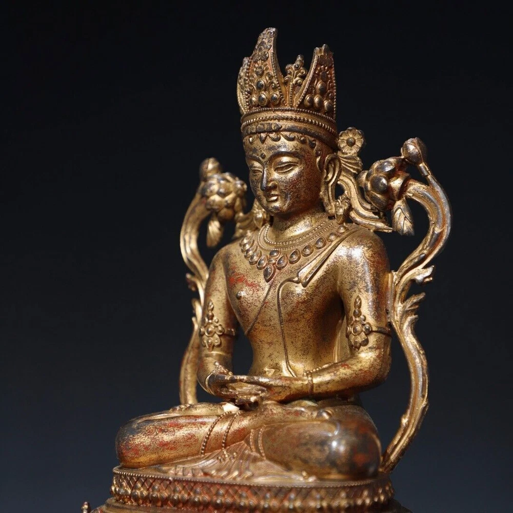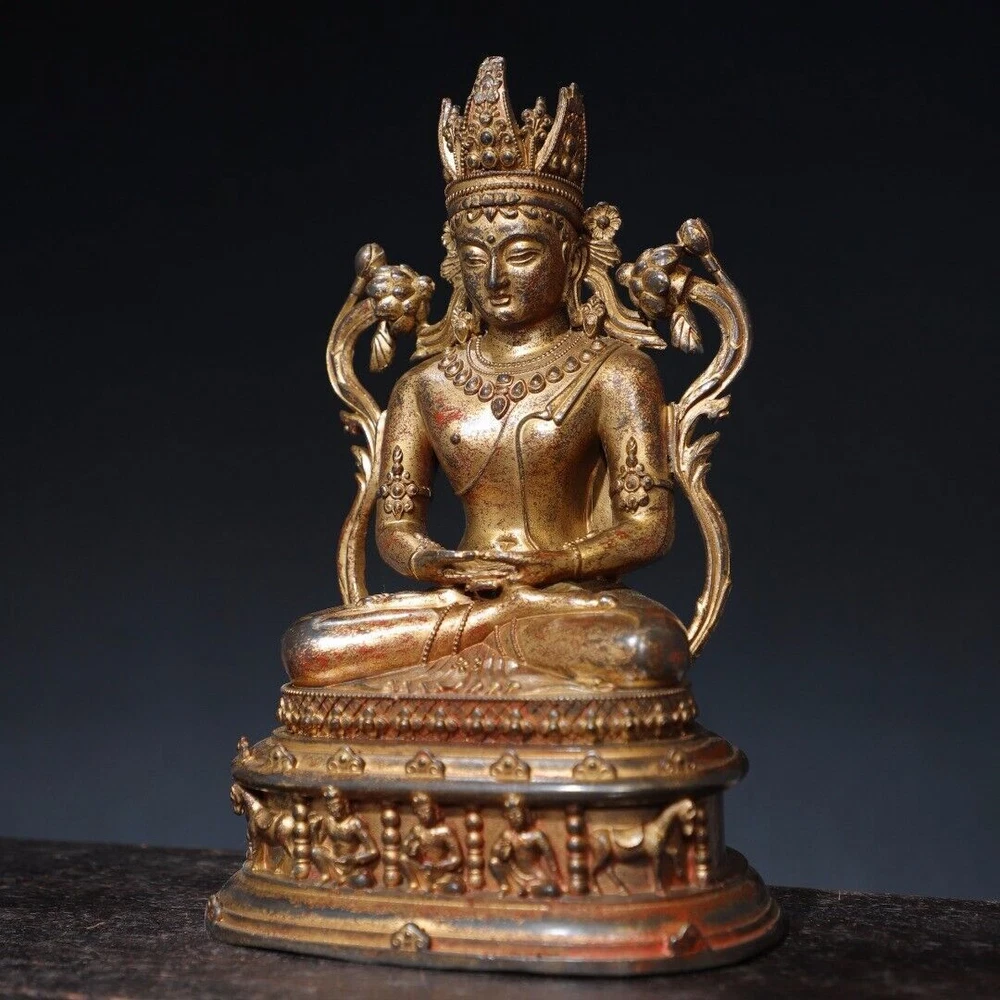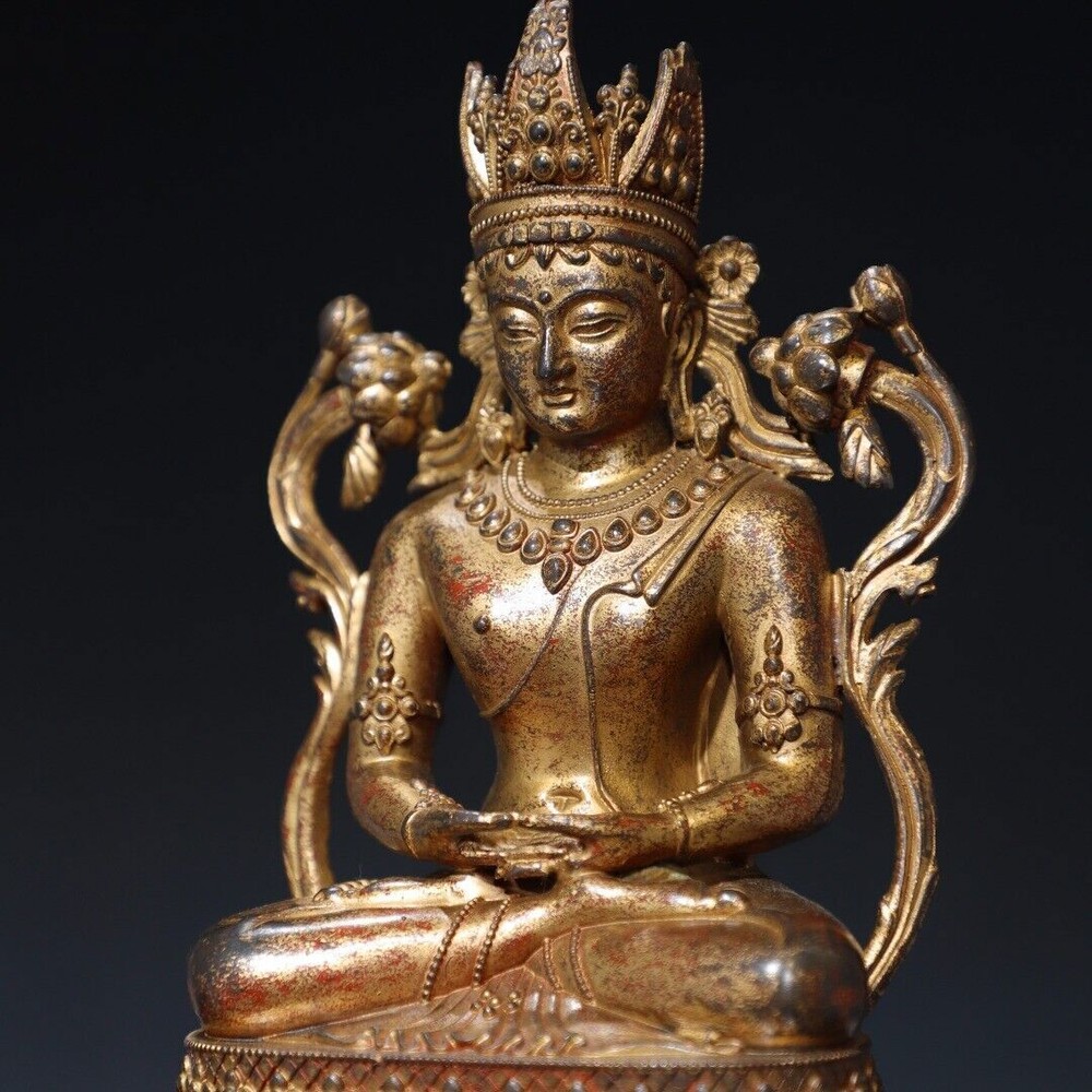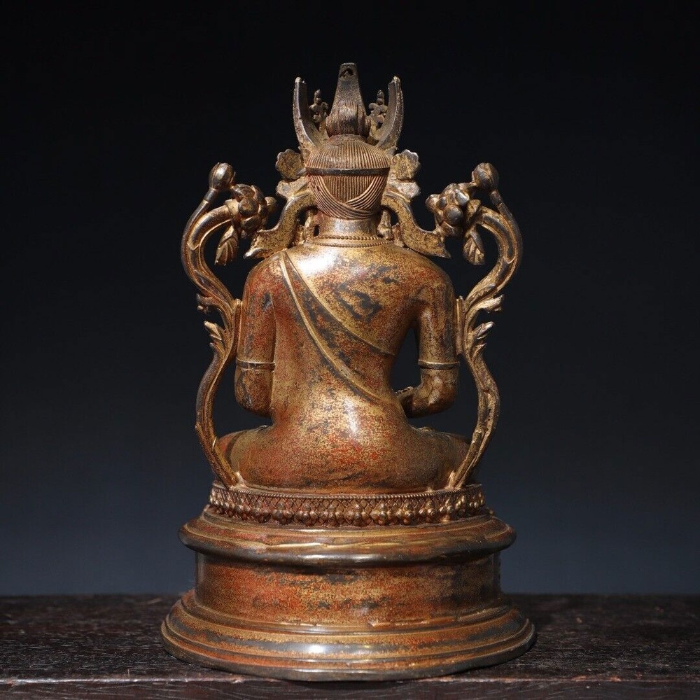 10-inch Antique Tibetan Bronze Gilt Amitabha Longevity Buddha Statue for Temple