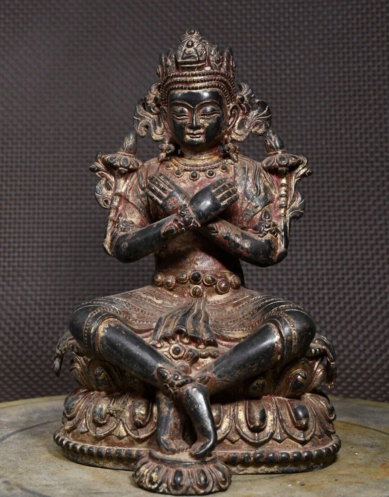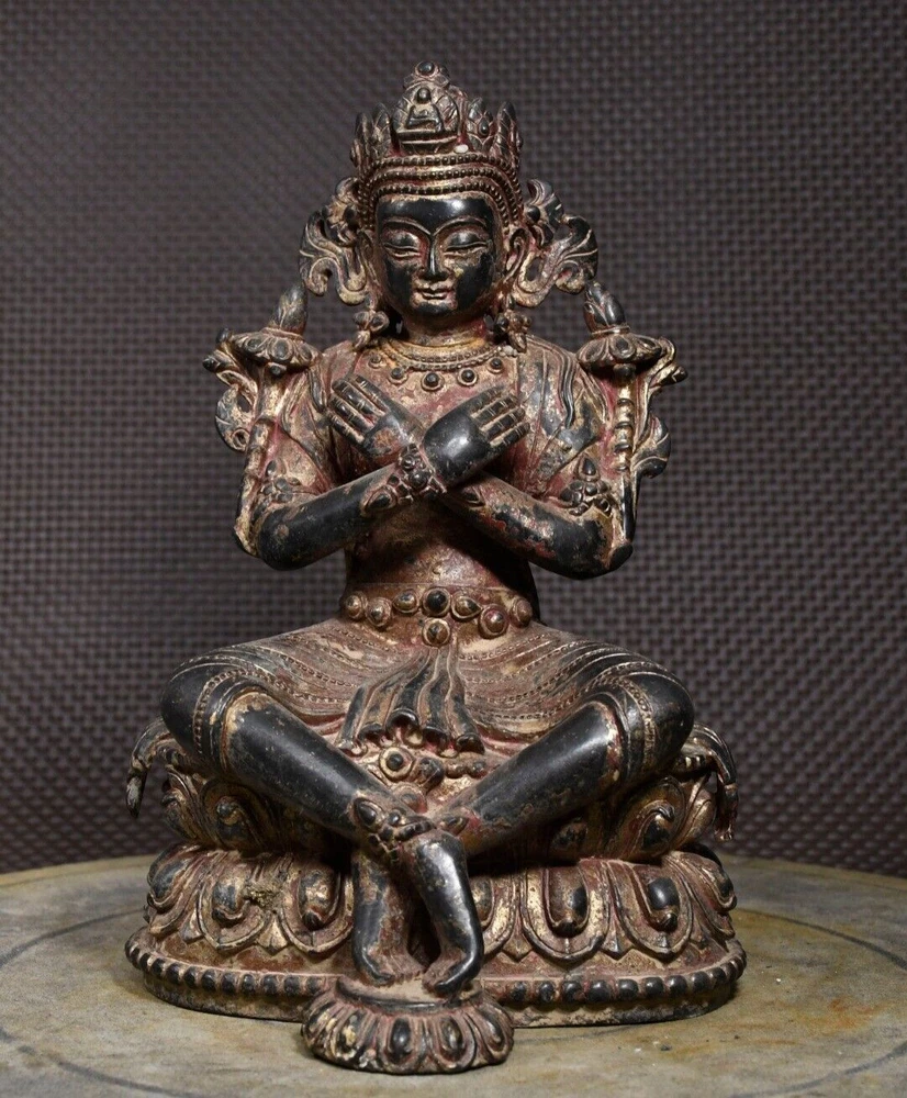 10-inch Antique Tibetan Bronze Vajradhara Buddha Temple Statue