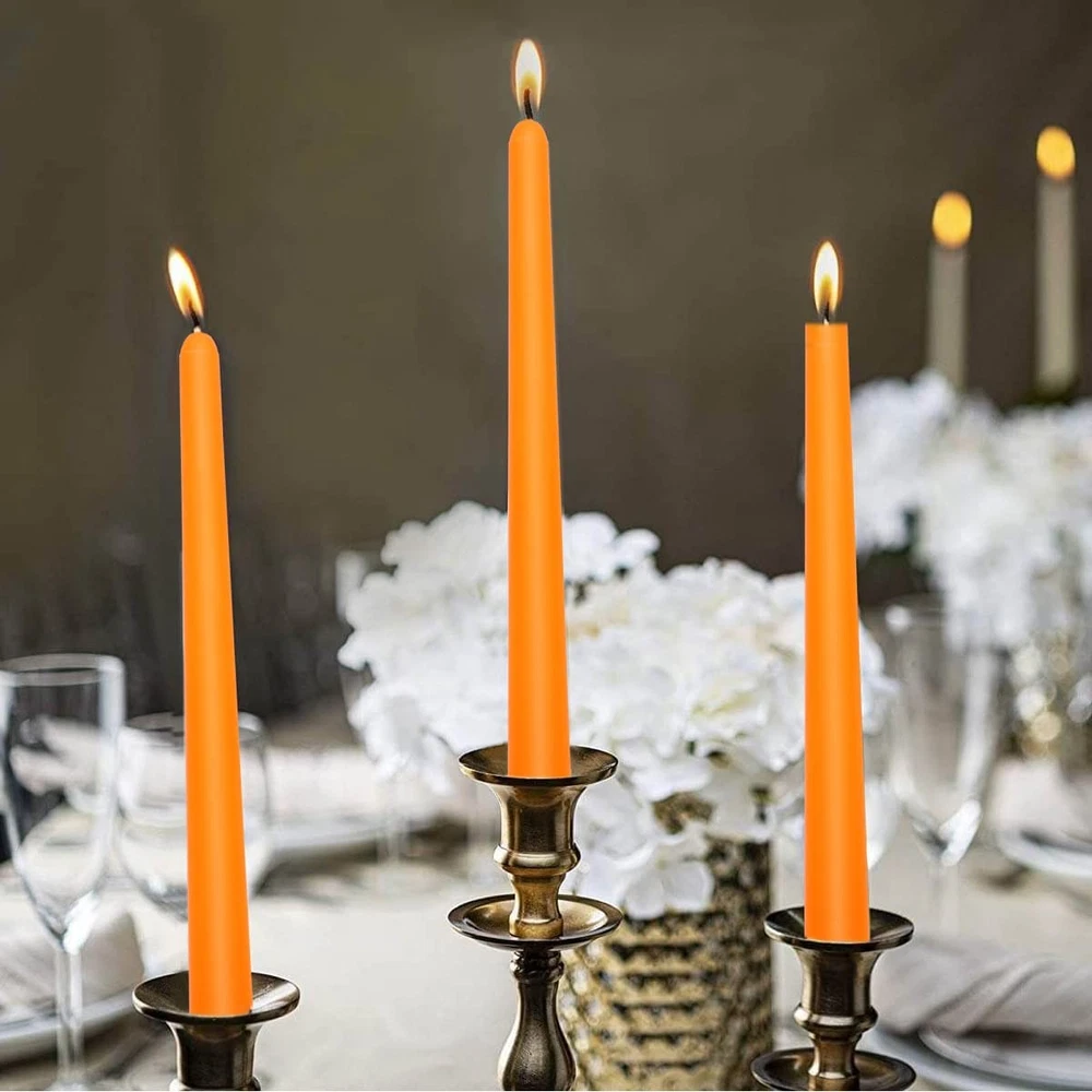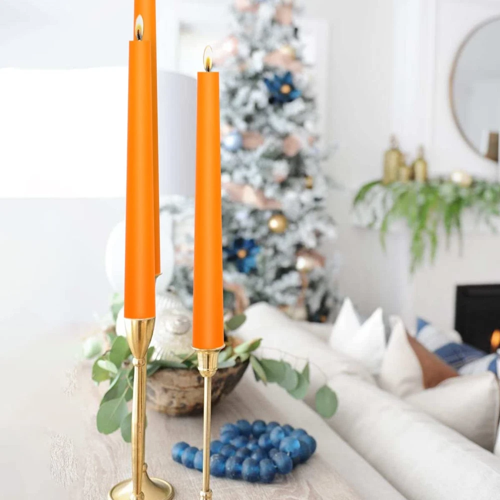 10-inch Orange Unscented Dripless Taper Candles Set of 12 for Home Decor