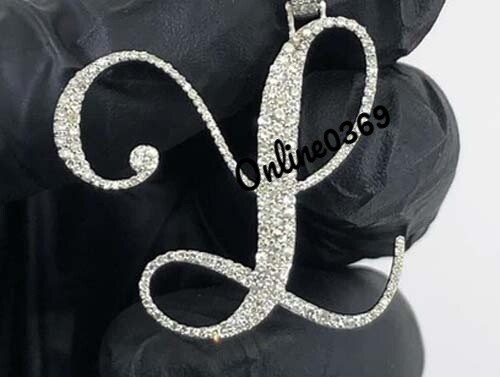 10k White Gold Custom Men's Cursive Letter Pendant with Natural White Diamond