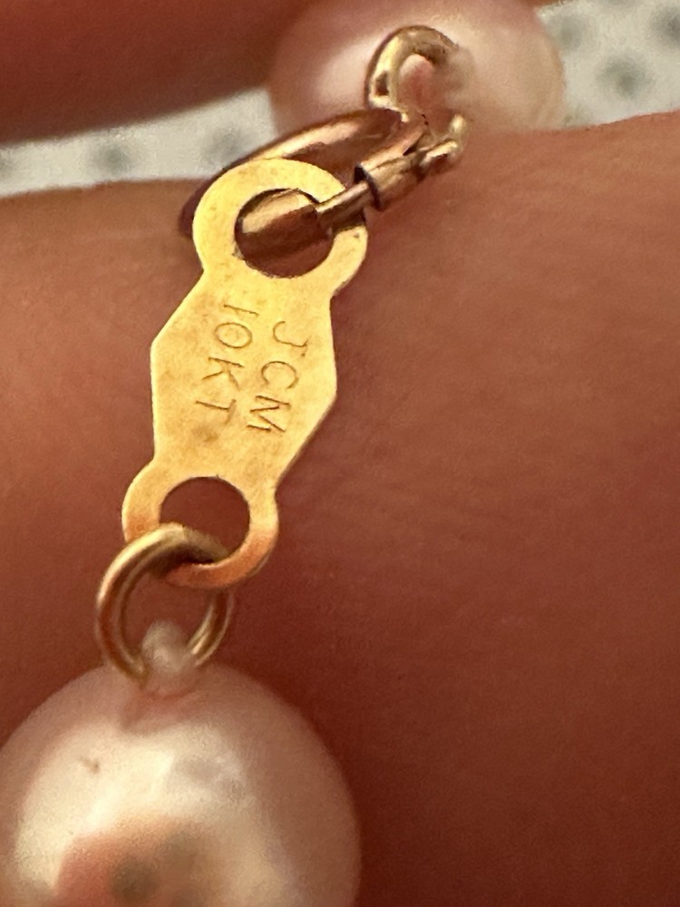 10kt Gold JCM Pink Pearl Jewelry Set with Necklace Bracelet Earrings