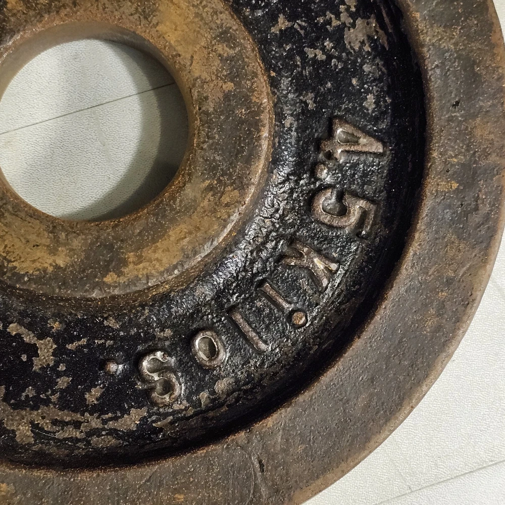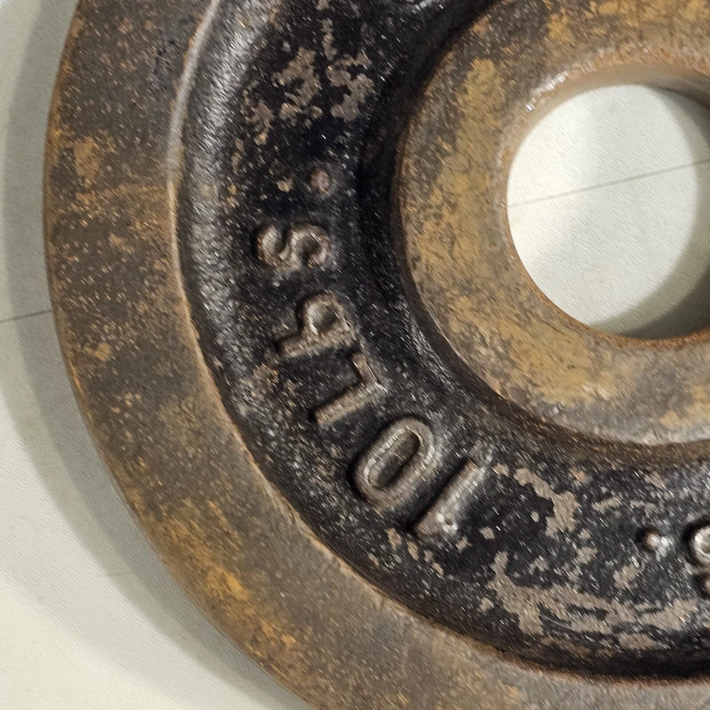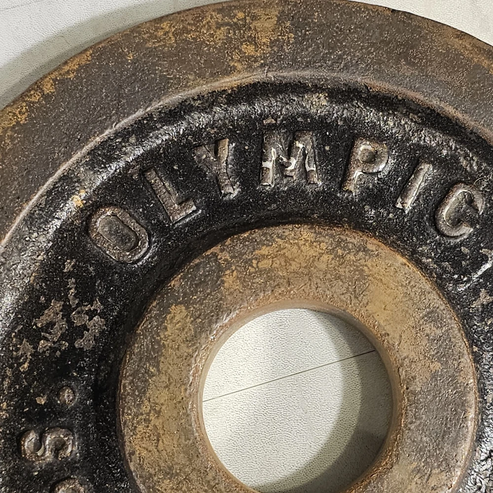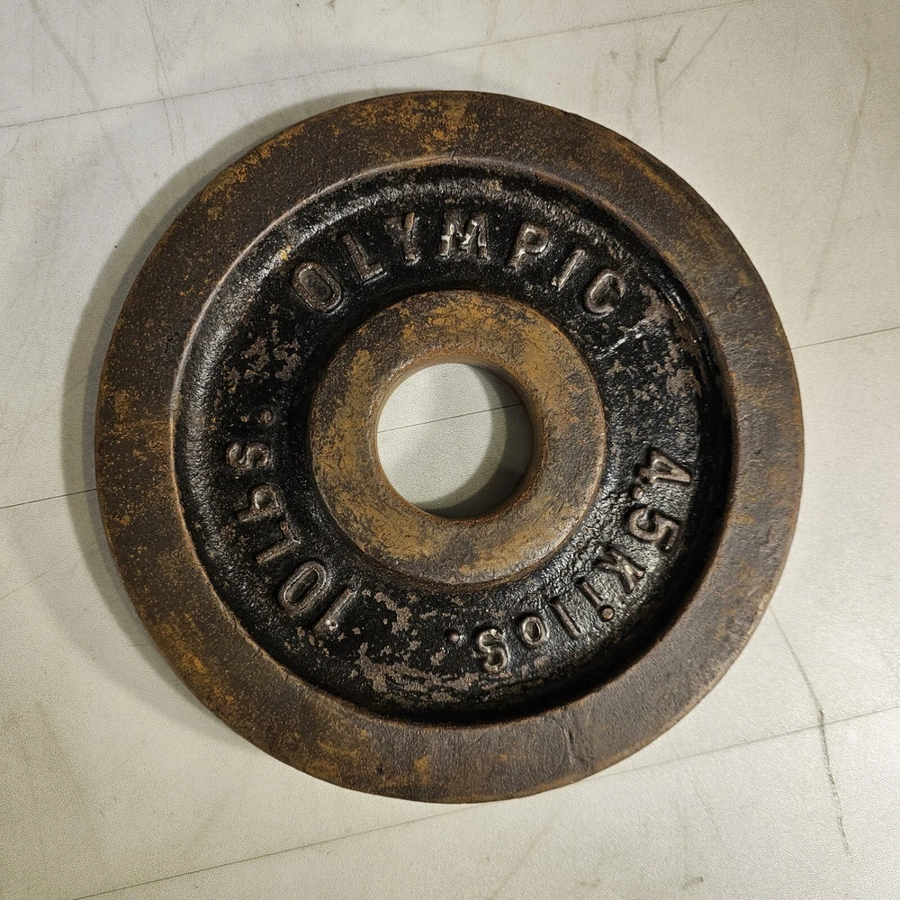 10lbs Olympic Barbell 2" Cast Iron Pre 4.5 Kilos Used. See photos. Vintage iron weights. We have three very similar weights available for sale at the time of listing.