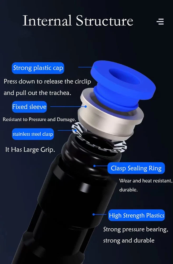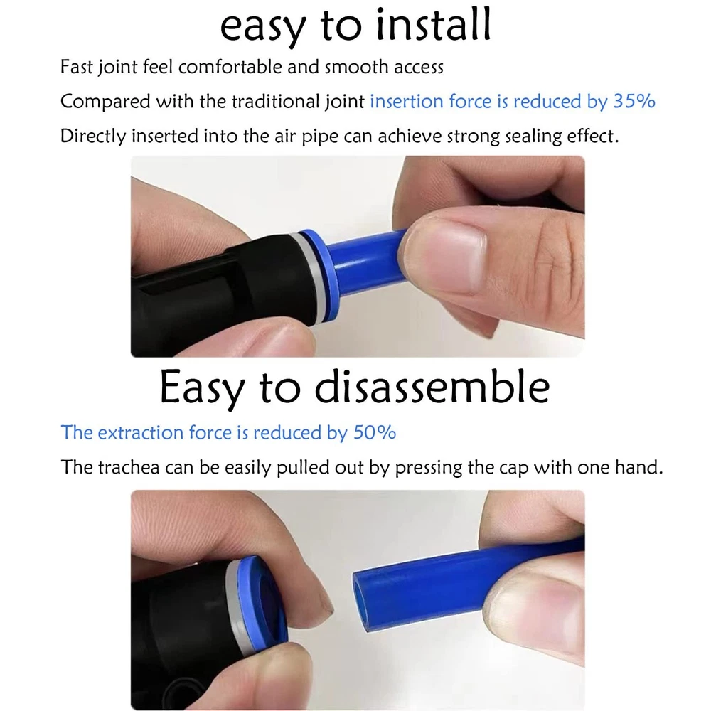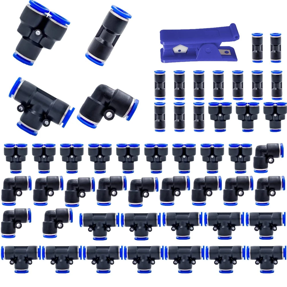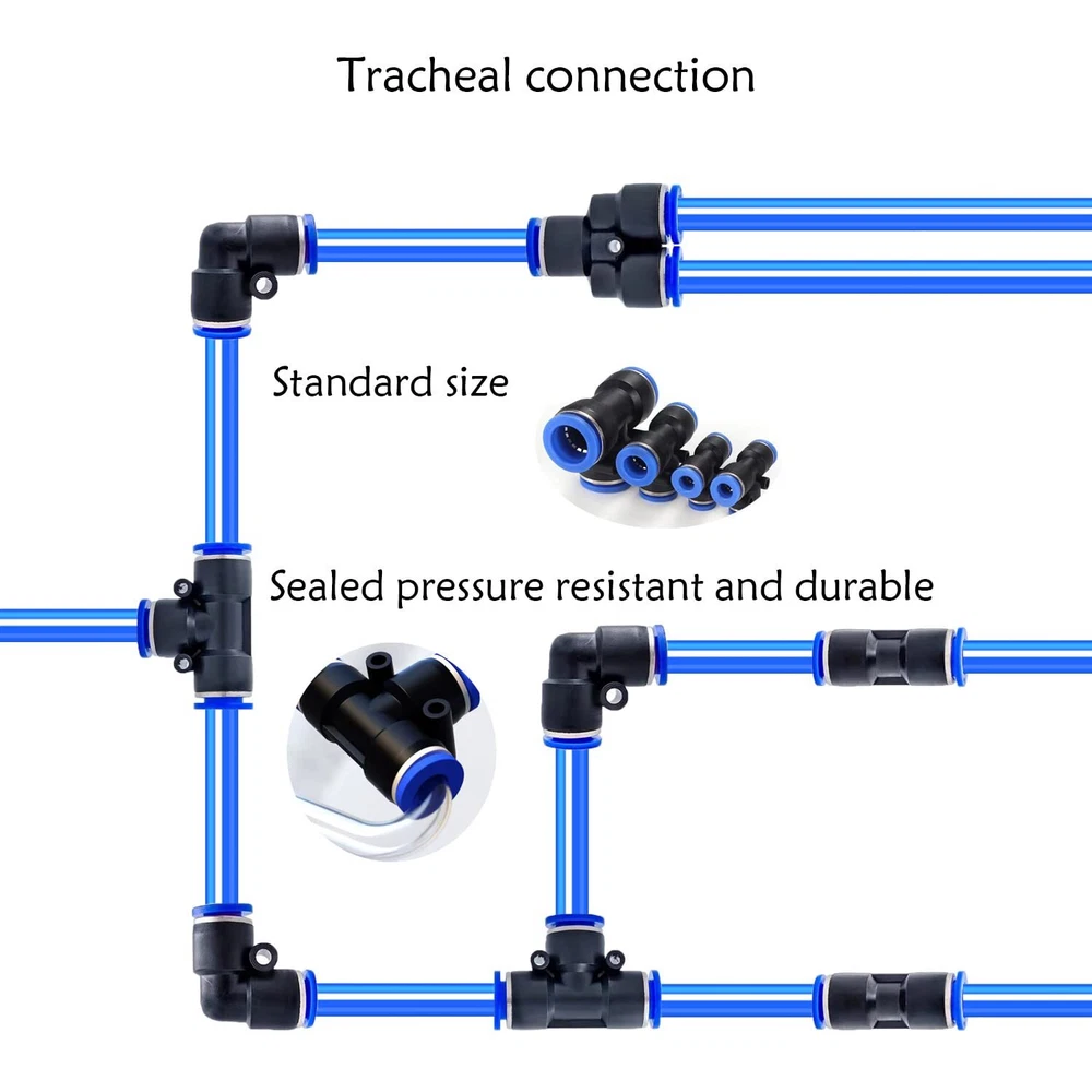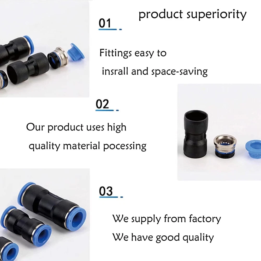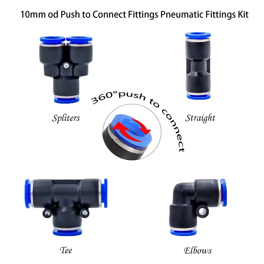 [Product name] 10mm plastic push-in connector (48Pcs) [Package includes]12Spliters+12Elbows+12Tee+12Straight +1Plastic Tubing Cutter (10mm OD,Blue) 【Pressure range】0~0.8MPa【Temperature range】0-60°C | 32~140°F [Quick Connection and Disassembly]: Simple push in design for connecting to the tube and provide secure connection. It can be easily removed by pressing the release ring 【Advantages】High pressure resistance, easy installation and long service life.