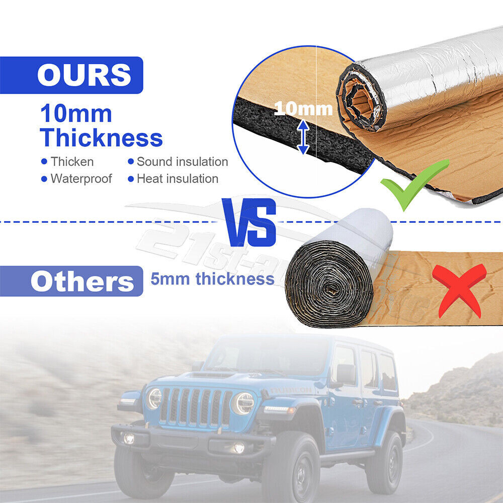 This heat and sound deadener is a game-changer for any car owner! The 10mm thick foam with aluminum foil provides excellent insulation, reducing road noise and keeping the cabin cooler. The strong adhesive backing makes installation a breeze—just peel and stick. It’s water-resistant, mold-proof, and crush-resistant, so it holds up perfectly over time. Perfect for doors, floors, or the trunk, this mat delivers premium quality at an affordable price. Highly recommend for a quieter, more comfortable ride!