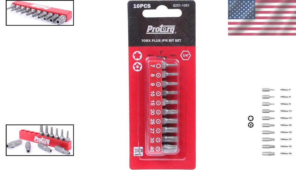 Precision-Machined 10 pc Torx Plus Security Bit Set - High Torque S2 Steel ‹ › ‹ › ‹ › ‹ › ‹ › ‹ › ‹ › Precision-Machined 10 pc Torx Plus Security Bit Set Crafted from high torque S2 steel, this versatile 10-piece Torx Plus security bit set is your essential companion for any project requiring tamper-proof precision and durability. Specification: 10 pcs of 1 inch Torx Plus 5-Point tamper-proof security bits: IPR 7, IPR 8, IPR 9, IPR 10, IPR 15, IPR 20, IPR 25, IPR 27, IPR 30, IPR 40. Includes a durable drive bits holder for easy organization. Features: Highly Compatible: The universal 1/4" hex shank seamlessly fits most drill chucks, drivers, and bit holders. High Grade Steel: Constructed from heavy-duty, cold-forged, high-grade steel for exceptional torque tolerance and resilience. Superior Fitment: Precision-machined tips ensure a snug fit in screw head recesses, minimizing the risk of stripped screws. Reliable Customer Service: Enjoy peace of mind with 24-hour customer support for all your tools needs. Why Choose Our Torx Plus Bit Set? When it comes to high-performance, reliability, and precision, look no further than our 10 pc Torx Plus Bit Set. Engineered for enthusiasts and professionals alike, each bit delivers a perfect balance of strength and accuracy, empowering you to tackle any task with confidence. Experience the unmatched quality that comes from a brand with 9 screwdriving system technology licenses. Choose excellence. Choose the Precision-Machined 10 pc Torx Plus Security Bit Set for all your security fastening needs. Get yours today and elevate your tool collection! Shipping Free & Fast Shipping - We offer free shipping to most of the USA with a normal delivery time of 3-7 days. However, due to the current situation, additional delivery time (up to 3 weeks) may be required for some items. Alternative Carriers - We may use alternative carriers (e.g. USPS, FedEx, UPS, etc.) to ensure your package arrives safely and on time. Due to the use of multiple carriers, we are unable to provide a tracking number automatically. Handling Time - Orders are processed and shipped within 1-2 business days of receiving cleared payment. Shipping Restrictions - Shipping to Alaska, Hawaii, Puerto Rico, Guam, and other US territories may incur shipping charges or delivery restrictions. Please contact us before ordering, or your order can be refunded/cancelled. State Restrictions - There may be restrictions based on your state of purchase. For example, certain items may not be shipped to California due to state regulations. Contact for Tracking Updates - If you require tracking updates or have any concerns about the delivery of your order, please feel free to contact us, and we will be happy to assist you. Return 30-Day Hassle-Free Returns - We want you to be completely satisfied with your purchase. If you are not, you can return the item within 30 days of receiving it for a full refund or exchange. Easy Return Process - To start a return, simply contact us and we will provide you with a prepaid return shipping label and detailed instructions. Restocking Fee - There are no restocking fees for returns. However, the buyer is responsible for return shipping costs if the return is not due to a seller's error. Refund Processing Time - Refunds will be processed within 5 business days of receiving the returned item in its original condition. Payment We accept all major credit cards, PayPal, and Apple Pay for your convenience. Your payment information is secure and encrypted to ensure a safe and seamless transaction. Please complete your payment within 3 days of purchase to avoid any delays in shipping. Feedback Your feedback is extremely important to us. We strive to provide the best products and customer service possible. If you are satisfied with your purchase, please take a moment to leave us a positive review. If you have any concerns or issues with your order, please contact us before leaving negative feedback. We are committed to resolving any problems and ensuring your satisfaction. Contact Us If you have any questions or concerns, please feel free to reach out to our customer support team. You can contact us through the eBay messaging system. We are available Monday to Friday, 9:00 am to 5:00 pm EST, and we will do our best to respond to your inquiry within 24 hours. Buy it now and enjoy a pleasant shopping experience! UPC: Not Set Model: Torx Plus Security Bits Item Width: Torx Plus Security Bits Item Length: Torx Plus Security Bits Item Height: Torx Plus Security Bits Item Diameter: 1 inch Item Weight: 2.39 ounces Unit Quantity: 10 Features: Tamper-Proof,Durable Drive Bits Holder,Precision-Machined Tip,High Torque Output,Universal 1/4" Hex Shank,Compatible with Drill Chucks,Compatible with Drivers,Max Durability Material: S2 Steel Brand: Unbranded Type: Bit Set Drive Type: Torx Plus Number of Pieces: 10 Star Size: Not Set System of Measurement: Standard (SAE) Manufacturer Warranty: Not Set MPN: Not Set Color: Silver Country/Region of Manufacture: Not Set Unit Type: oz