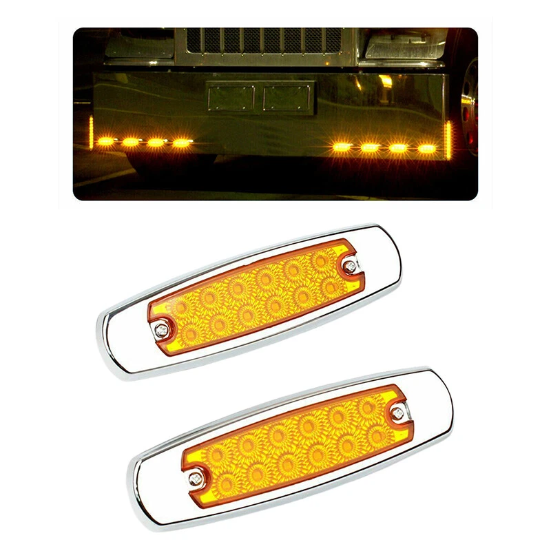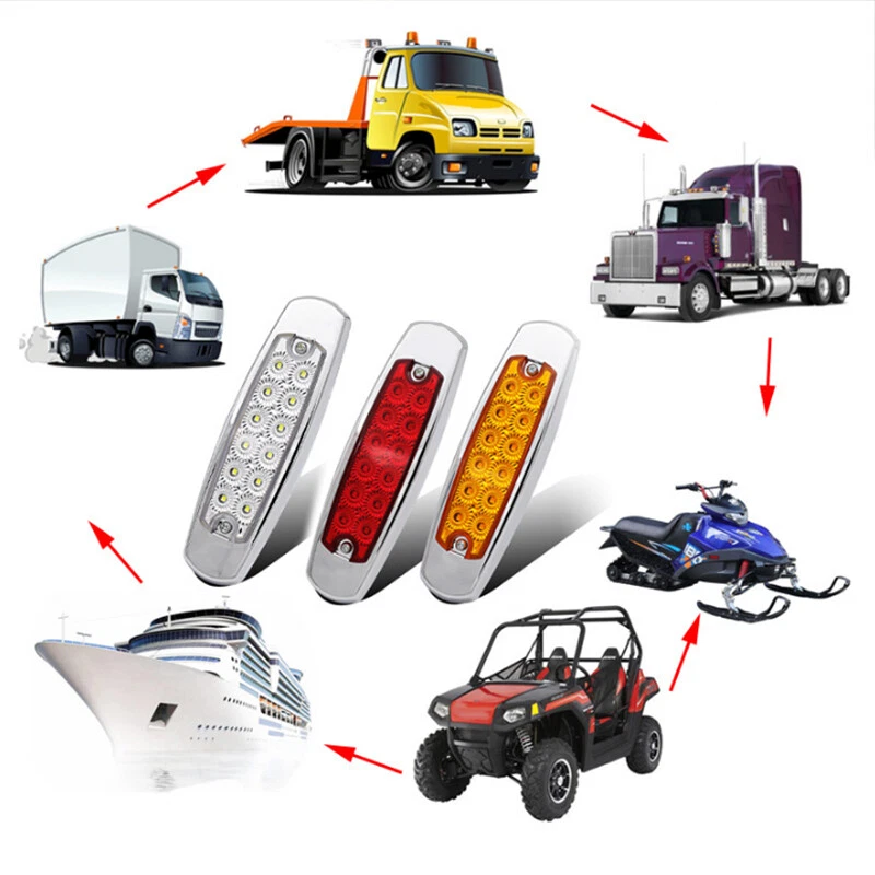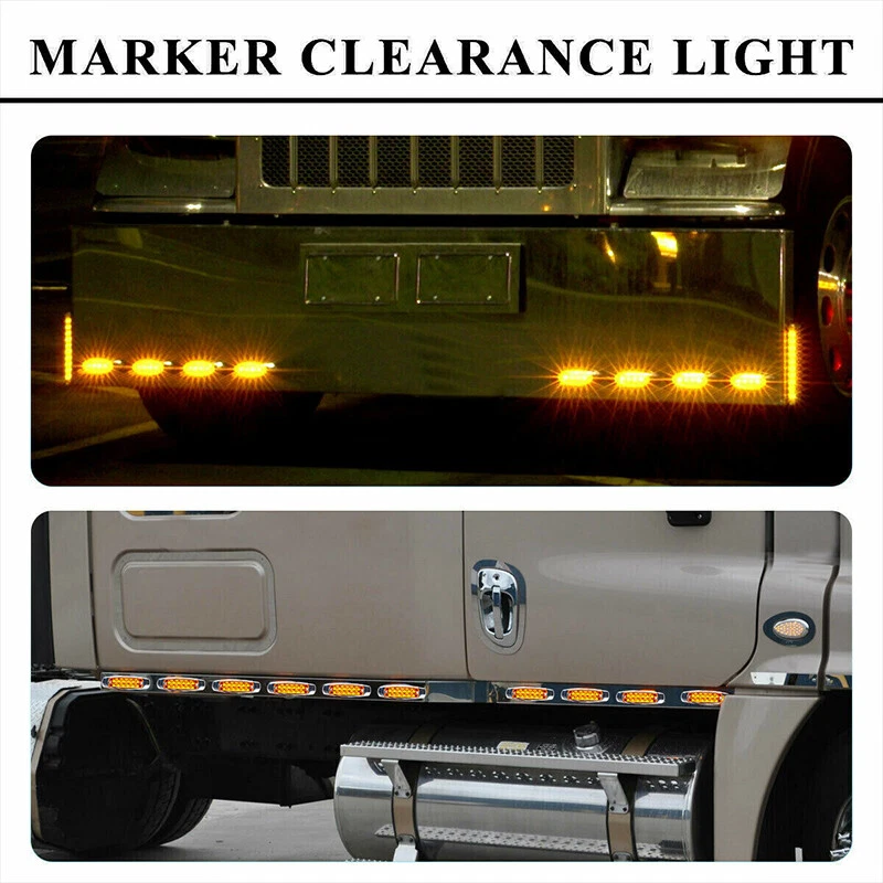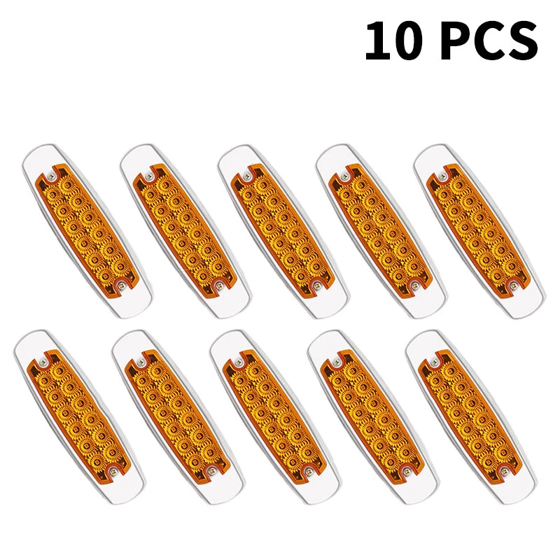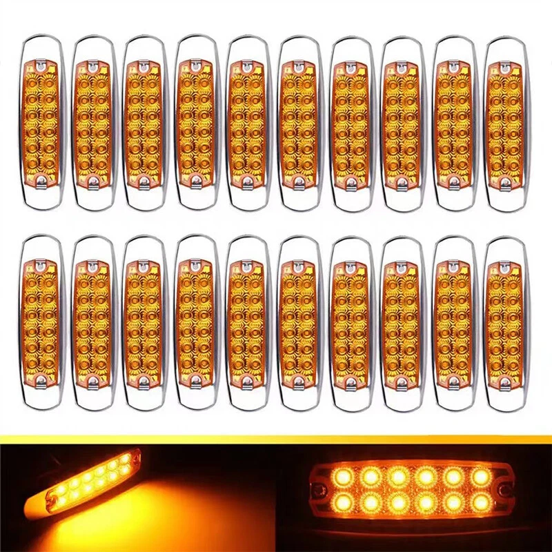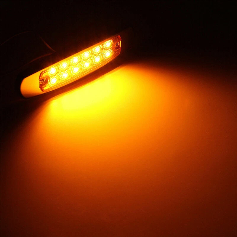 Applicable vehicle models: trucks, freight cars, Waterproof rating: IP67 1. Material: AS lampshade 2. Model number; LED truck edge lights 3. Color: Yellow 4. Power: 12 * 0.3 W 5. Voltage: 12-24V wide voltage 6. Number of LED beads: 12 7 types of LED beads: 2835 LED beads 8. Wiring method: Black negative pole, colored positive pole contain: 10/20pcs side lights Pls note: 1. Due to different computer display colors, the actual color may be slightly different from the above pictures. 2. Due to manual measurement, please allow 1-3cm error.