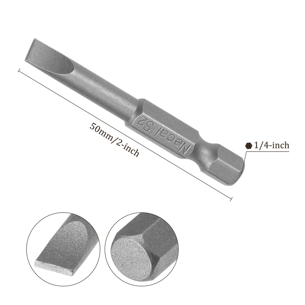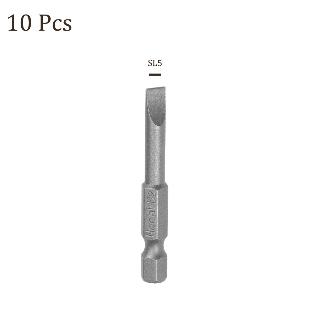 10pcs 2" H1/4 SL5 Magnetic Slotted Screwdriver Bits for Power Tools