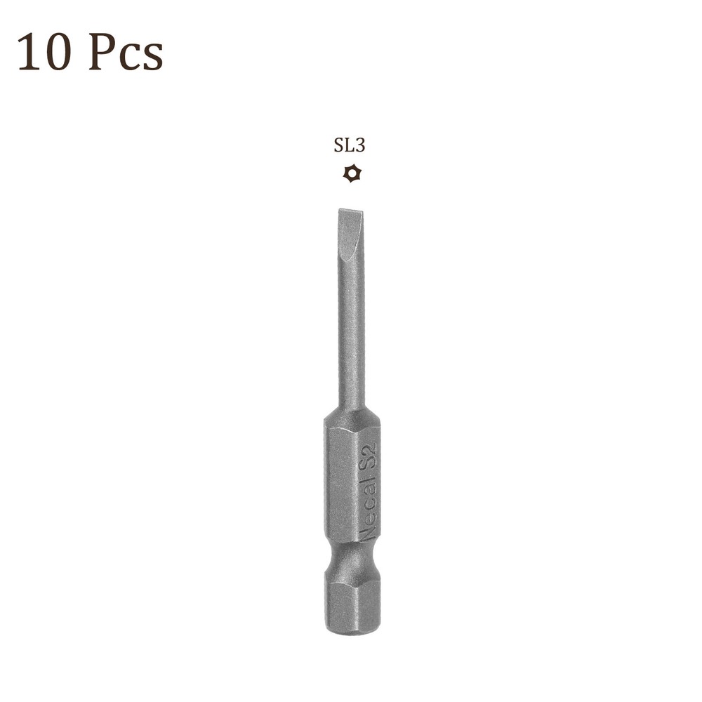 Document APPLICATION- Fit for electric screwdriver, manual screwdriver, power drill and other pneumatic or power tools with 1/4" hex holder. Widely used in cars, trucks, engines, motorcycles, computers, cable boxes and other applications.ABOUT THIS PRODUCT- Made of S2 alloy steel, which is a commonly used material in hardware with high hardness.- Sandblasting surface, corrosion resistance and durability.- Magnetic tip, can suck the screws easily when used it.- Exquisite workmanship, each edge can be accurately locked screws, no damage to the screw, and the screwdriver head.SPECIFICATIONBit Type: T15 Shank: 1/4“ Hex ShankLength: 50mm / 2”Material: S2 Alloy SteelFinish: SandblastingPackage: 10 packs of Flat Head Screwdriver BitTAKE NOTICE OF- Do not turn the screws with mismatched size to avoid damage to both the screw and the drill. 10pcs Slotted Screwdriver Bit - [2" x H1/4 x SL3] Magnetic for Power Tool Use APPLICATION - Fit for electric screwdriver, manual screwdriver, power drill and other pneumatic or power tools with 1/4" hex holder. Widely used in cars, trucks, engines, motorcycles, computers, cable boxes and other applications. ABOUT THIS PRODUCT - Made of S2 alloy steel, which is a commonly used material in hardware with high hardness. - Sandblasting surface, corrosion resistance and durability. - Magnetic tip, can suck the screws easily when used it. - Exquisite workmanship, each edge can be accurately locked screws, no damage to the screw, and the screwdriver head. SPECIFICATION Bit Type: T15 Shank: 1/4“ Hex Shank Length: 50mm / 2” Material: S2 Alloy Steel Finish: Sandblasting Package: 10 packs of Flat Head Screwdriver Bit TAKE NOTICE OF - Do not turn the screws with mismatched size to avoid damage to both the screw and the drill. Hot Item Payment 1.We accept eBay payment . 2.Payment must be received within 7 business days of auction closing. Shipping 1.We ship to your eBay or Paypal address. Please make sure your eBay and Paypal address is correct before you pay. 2.Items will be shipped within 1-3 business day when we received payment. 3.Delivery time depends on destination and other factors. Description Policy 10pcs Slotted Screwdriver Bit - [2" x H1/4 x SL3] Magnetic for Power Tool Use APPLICATION - Fit for electric screwdriver, manual screwdriver, power drill and other pneumatic or power tools with 1/4" hex holder. Widely used in cars, trucks, engines, motorcycles, computers, cable boxes and other applications. ABOUT THIS PRODUCT - Made of S2 alloy steel, which is a commonly used material in hardware with high hardness. - Sandblasting surface, corrosion resistance and durability. - Magnetic tip, can suck the screws easily when used it. - Exquisite workmanship, each edge can be accurately locked screws, no damage to the screw, and the screwdriver head. SPECIFICATION Bit Type: T15 Shank: 1/4“ Hex Shank Length: 50mm / 2” Material: S2 Alloy Steel Finish: Sandblasting Package: 10 packs of Flat Head Screwdriver Bit TAKE NOTICE OF - Do not turn the screws with mismatched size to avoid damage to both the screw and the drill. Hot Item Payment 1.We accept eBay payment . 2.Payment must be received within 7 business days of auction closing. Shipping 1.We ship to your eBay or Paypal address. Please make sure your eBay and Paypal address is correct before you pay. 2.Items will be shipped within 1-3 business day when we received payment. 3.Delivery time depends on destination and other factors.