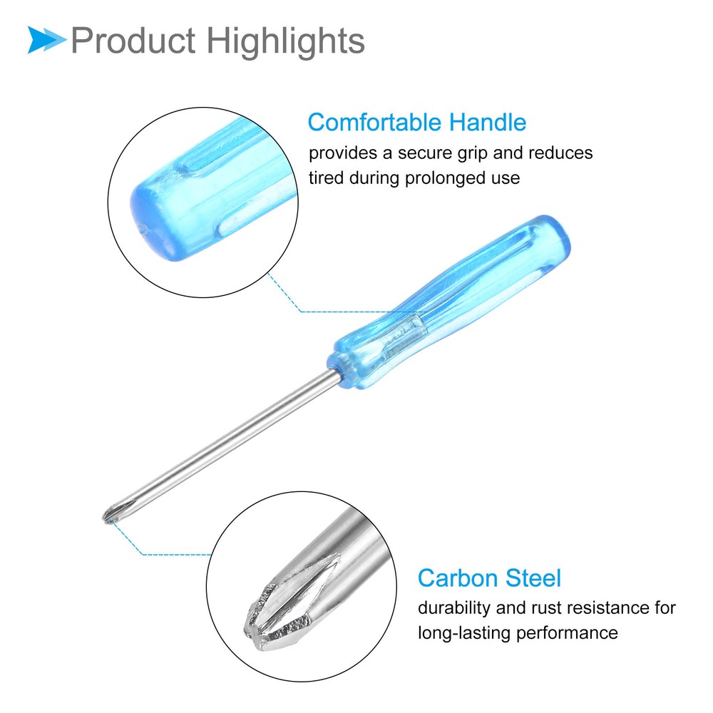 Document Attributes:* Size: 2.0mm* Total Length: 65mm / 3.15-inch* Shaft Material: Carbon SteelWhat Is Included:* 10 Pieces x Micro ScrewdriversApplications & Features:--- This screwdriver is a multifunctional tool suitable for a variety of electronic devices and appliances and can be used on laptops, computers, game consoles, pocket knives, doorbells, dishwashers, routers, and more.--- The screwdriver features a comfortable handle that provides a secure grip and reduces tired during prolonged use--- The screwdriver is made from carbon steel material ensuring strength, durability and rust resistance for long-lasting performance.Useful Tips:--- Please confirm the screwdriver size before buying. 10pcsSmall Phillips Screwdriver 2.0mm 65mm Cross Screwdriver W Anti-slip Handle Attributes: * Size: 2.0mm * Total Length: 65mm / 3.15-inch * Shaft Material: Carbon Steel What Is Included: * 10 Pieces x Micro Screwdrivers Applications & Features: --- This screwdriver is a multifunctional tool suitable for a variety of electronic devices and appliances and can be used on laptops, computers, game consoles, pocket knives, doorbells, dishwashers, routers, and more. --- The screwdriver features a comfortable handle that provides a secure grip and reduces tired during prolonged use --- The screwdriver is made from carbon steel material ensuring strength, durability and rust resistance for long-lasting performance. Useful Tips: --- Please confirm the screwdriver size before buying. Hot Item Payment 1.We accept eBay payment . 2.Payment must be received within 7 business days of auction closing. Shipping 1.We ship to your eBay or Paypal address. Please make sure your eBay and Paypal address is correct before you pay. 2.Items will be shipped within 1-3 business day when we received payment. 3.Delivery time depends on destination and other factors. Description Policy 10pcsSmall Phillips Screwdriver 2.0mm 65mm Cross Screwdriver W Anti-slip Handle Attributes: * Size: 2.0mm * Total Length: 65mm / 3.15-inch * Shaft Material: Carbon Steel What Is Included: * 10 Pieces x Micro Screwdrivers Applications & Features: --- This screwdriver is a multifunctional tool suitable for a variety of electronic devices and appliances and can be used on laptops, computers, game consoles, pocket knives, doorbells, dishwashers, routers, and more. --- The screwdriver features a comfortable handle that provides a secure grip and reduces tired during prolonged use --- The screwdriver is made from carbon steel material ensuring strength, durability and rust resistance for long-lasting performance. Useful Tips: --- Please confirm the screwdriver size before buying. Hot Item Payment 1.We accept eBay payment . 2.Payment must be received within 7 business days of auction closing. Shipping 1.We ship to your eBay or Paypal address. Please make sure your eBay and Paypal address is correct before you pay. 2.Items will be shipped within 1-3 business day when we received payment. 3.Delivery time depends on destination and other factors.