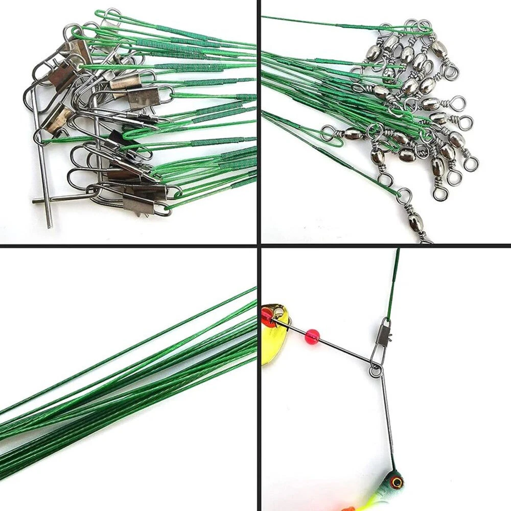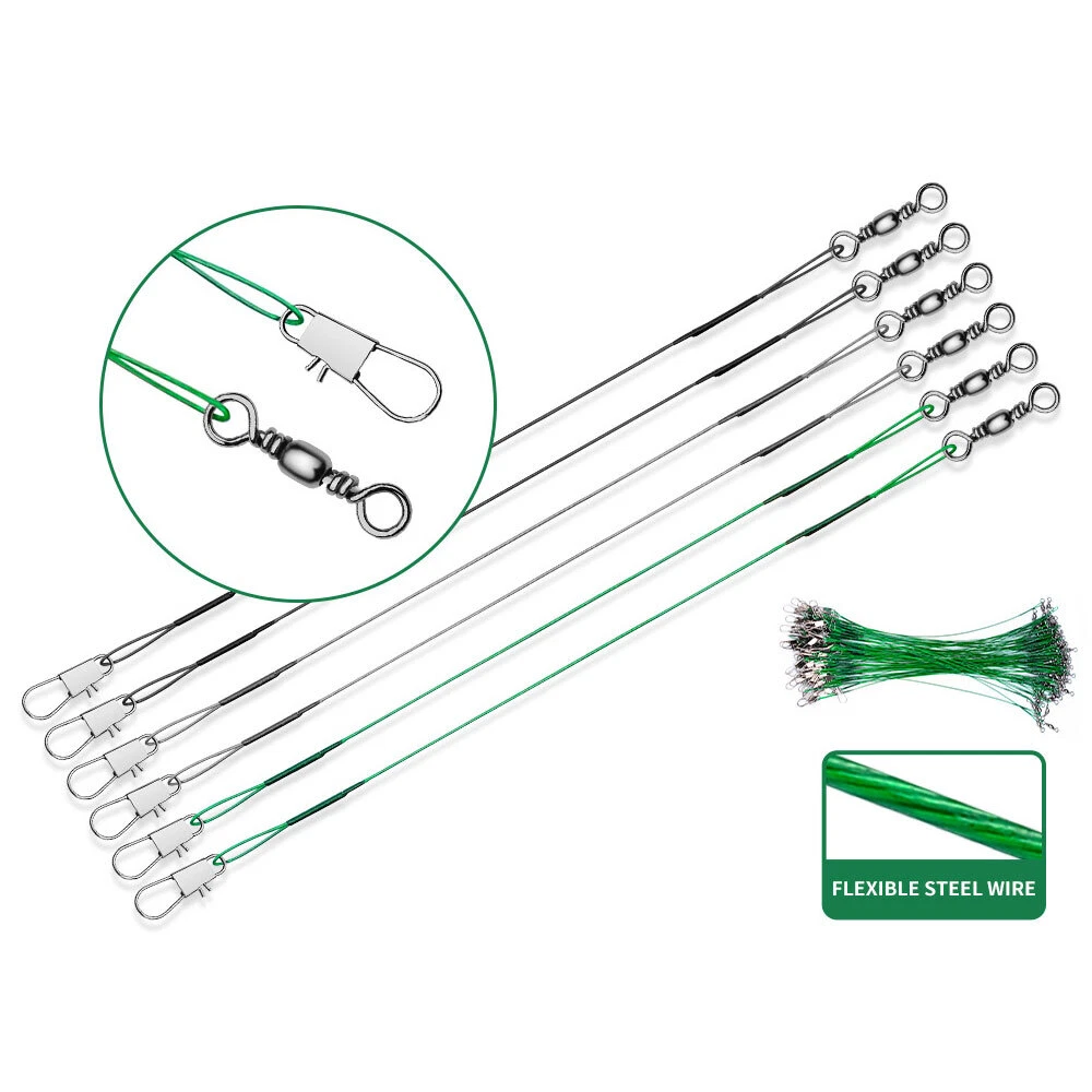 DESCRIPTION Features: 1)Fishing tackle leader: made of premium stainless steel, nylon-coated, to ensure these high-quality leaders are tough enough for sharp teeth, stronger. 2)Perfect fishing equipment leader, corrosion resistant, durable, and tough enough for fishes with sharp teeth, with swivel and clip, is easy to connect fishing lure, fishing bait, fishing hooks, weight set. great for use in both saltwater and freshwater. 3)Fishing accessories of steel leaders are great for toothy fish, such as pike, catfish, trout, crappie, striped, bass, eagle claw, northern pike. Details Color: green / black / grey Length: 15cm, 20cm, 25cm, 30cm Weight: 0.72g/pc; 0.76g/pc; 0.83g/pc; 0.86g/pc Package: 10PCS Fishing Wire Leader Notice: 1.Due to the difference showing indifferent monitors, the picture may not reflect the actual color of the product. 2.Please allow 1-2CM error due to the manual measurement. Hope you can understand. Thank you! SHIPPING The package will be delivered within the promised time shown on the order. Normally,the displayed time will be longer than actual time. Package will arrive in 10-25 business days. The arrival time depends on some factors and different areas. TERMS OF SALE Please Note: Import duties, taxes, and charges are not included in the item price or shipping fee. These charges are the buyer's responsibility. If you buy goods in a big way ,please contact us to enquiry a lower price !!!!!!!! ABOUT US Our working time: Beijing time:Monday to Saturday 8:00 am to 5:00 pm We do not work in holidays of China We will reply your email in 24 hours. If you are not satisfied with the product or service,please contact us and don't give us negative or natural feedback,We will give you a satisfactory solution. Features: 1)Fishing tackle leader: made of premium stainless steel, nylon-coated, to ensure these high-quality leaders are tough enough for sharp teeth, stronger. 2)Perfect fishing equipment leader, corrosion resistant, durable, and tough enough for fishes with sharp teeth, with swivel and clip, is easy to connect fishing lure, fishing bait, fishing hooks, weight set. great for use in both saltwater and freshwater. 3)Fishing accessories of steel leaders are great for toothy fish, such as pike, catfish, trout, crappie, striped, bass, eagle claw, northern pike. Details Color: green / black / grey Length: 15cm, 20cm, 25cm, 30cm Weight: 0.72g/pc; 0.76g/pc; 0.83g/pc; 0.86g/pc Package: 10PCS Fishing Wire Leader Notice: 1.Due to the difference showing indifferent monitors, the picture may not reflect the actual color of the product. 2.Please allow 1-2CM error due to the manual measurement. Hope you can understand. Thank you! SHIPPING The package will be delivered within the promised time shown on the order. Normally,the displayed time will be longer than actual time. Package will arrive in 10-25 business days. The arrival time depends on some factors and different areas. Terms of Sale Please Note: Import duties, taxes, and charges are not included in the item price or shipping fee. These charges are the buyer's responsibility. If you buy goods in a big way ,please contact us to enquiry a lower price !!!!!!!! ABOUT US Our working time: Beijing time:Monday to Saturday 8:00 am to 5:00 pm We do not work in holidays of China We will reply your email in 24 hours. If you are not satisfied with the product or service,please contact us and don't give us negative or natural feedback,We will give you a satisfactory solution.
