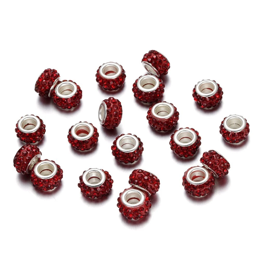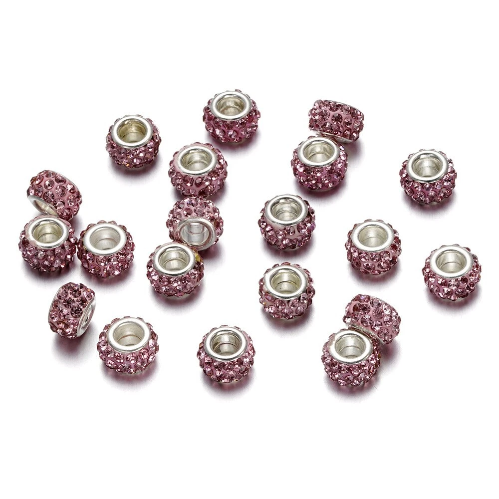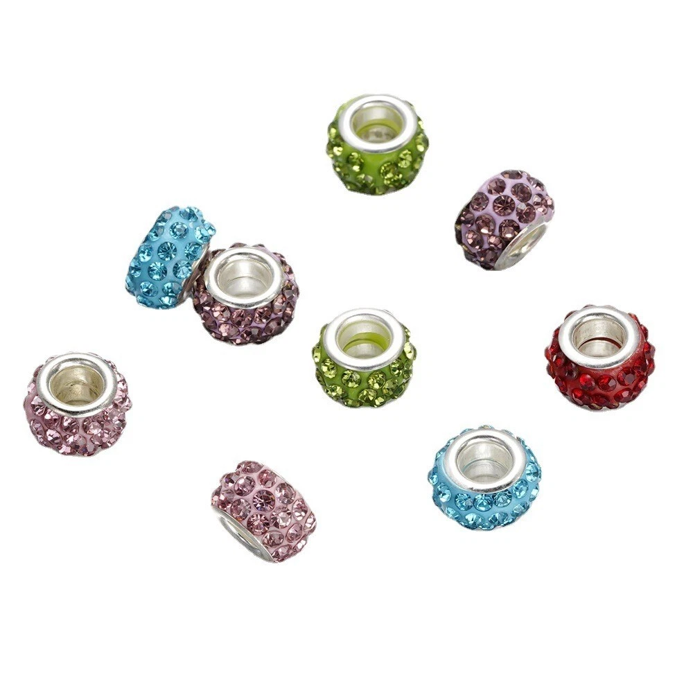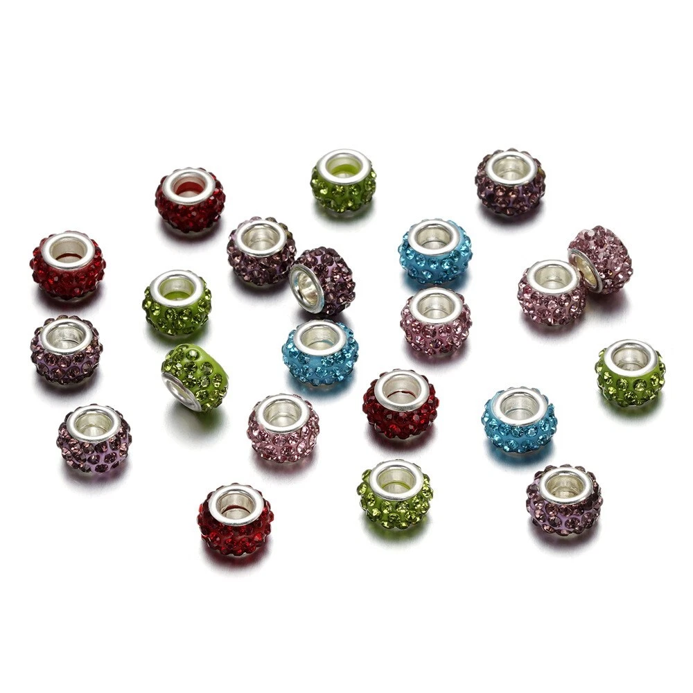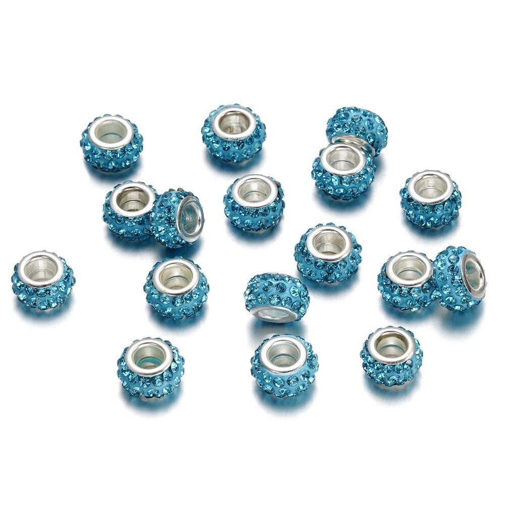 10pcs Crystal Polymer Clay Rhinestone European Large Hole Rondelle Beads 12x5mm Description: Material: Polymer Clay Size: diameter: 12mm; hole: 5mm Color: Multicolor Features: This product consists of 10 multicolor rhinestone European large hole rondelle beads measuring 12-12.9 mm in size. The beads are made of crystal material with a bling finish, designed in a spacer style. They are embellished with polymer clay and are ideal for crafting jewelry. The beads are from China and have a unique design that adds a touch of elegance to any jewelry piece. Package Includes: 10Pcs
