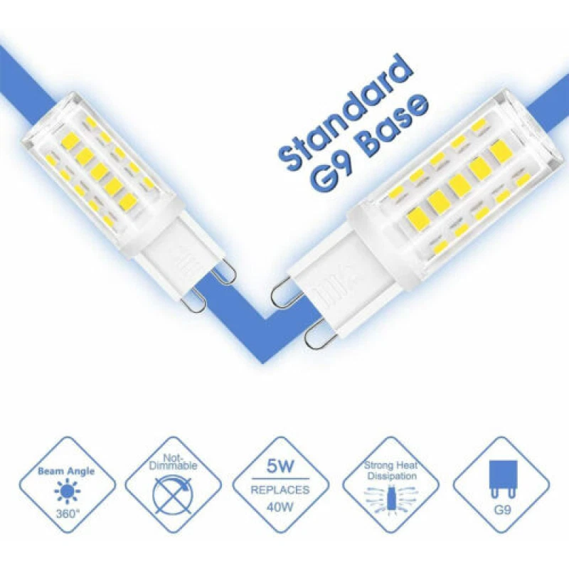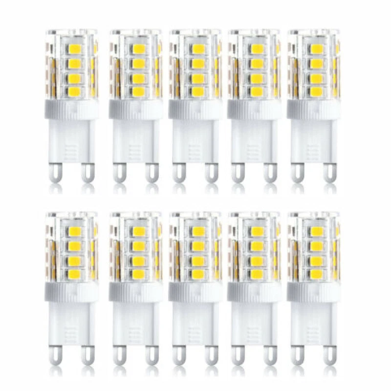 Feature: Energy saving: 5W equivalent to 40W halogen bulbs, which can save up to 90% energy. Lifespan of 30000 hours, can reduce the frequency of replacing G9 bulbs. Eco friendly: G9 LED bulb , no lead or harmful mercury, 6000K cool white colour , beautiful and soft. 360° beam angle, no delay, no beeps, no flicker. Easy and quick installation: standard G9 base, can be easily installed to replace ordinary G9 halogen bulbs, just plug and play. Widely applications: G9 LED lamp, for chandeliers, cabinet lighting, wall light and various LED lighting body G9. Suitable for families, cafes, restaurants, art galleries, hotels and most lighting places. Stable and comfortable light: with 360 lumens, our G9 is very effective against eye protection. There is no flickering and noise compared to other G9 LED bulbs. Specification: - Colour rendering index (CRI): > 80 Ra. - Dimmable: no. - Power: 5 Watt - Light intensity: 360 lm. - Beam angle: 360 degrees. - Socket: standard G9 socket. - Lifespan: 30,000 hours. - Input voltage: 220-240V - Main material: ceramic/PC - Colour temperature: cool white (6000 K) - Incandescent Equivalent: 40 Watt Halogen Bulbs Package contents: 10 x G9 LED light bulbs. About This Item(We aim to show you accurate product information) 1.The Real Object May Exist Slightly Colors Differences Compared To Images As Different Computers Display.Caution If Minding,Thanks. 2.There Might Be A Manual Measuring 1-3 cm Error.Sorry For Any Inconvenience(note 1cm=0.39inch) . 3.Please Prevail On Real Item, Model Images For Reference Only. 4.Attention!!!Please check the size chart carefully before placing the order. Thanks for your understanding. Please note: 1.Please allow a little error due to manual measurement. 2.The color maybe a little difference because of the light,screen reflection etc. 3 .If you are not sure what size to choose, please contact us and we will recommend the right size for you .