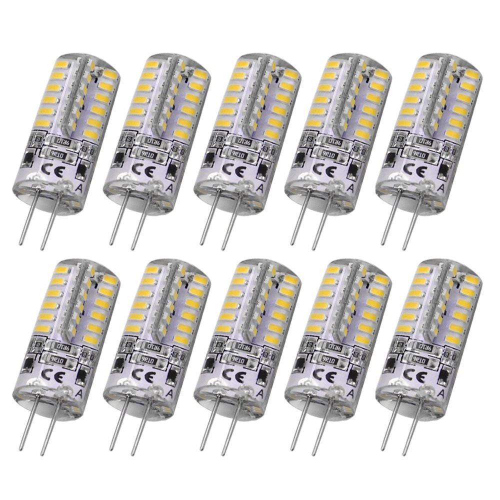 10pcs G4 Base LED Light Bulbs, Warm White 3000K, 3 Watt Equivalent to 20W T3 Note Tip: This bulb don't fit RV, it ONLY used for DC12V lighting appliance. And please note that these bulbs are non-dimmable, please don't use them with dimmer or unstable 12 volts, or the bulbs will flicker or make noise. Technical Features: Light angle: 360 Directional; 48pcs 3014-LED chips,Watts: 3W LED bulb Equivalent to 20W T3 Halogen Track Bulb, Volts: ONLY For DC 12V System, Warm White 3000K, Non-dimmable. Size: 12mm*36mm, Please note that this bulb is a little larger than a traditional halogen bulb. Please refer to the second picture for details. Application: Standard G4 base,can be easily fitted instead of ordinary halogen bulbs.G4 LED light bulbs are used for landscape lighting, courtyard, garden, lawn lights, puck lights, under cabinet lighting, under counter lights, post lights, recessed light and etc. Attention: Humid environment, like pathway, patio, sailing boat, will shorten the lifespan of the g4 led bulbs, please avoid as much as possible. Eco-friendly and Energy saving: Lifespan is over 20000 hrs,save effort and maintenance costs on changing bulbs frequently.Save electricity bill: Replace 20W halogen bulb by 3W LED, save 85% on electricity bill of lighting. No lead or mercury; No UV or IR Radiation. Friendly Customer Service: If the G4 LED bulbs are damaged during shipping or after installation, Please feel free to contact us, If you have any issues with the product, we will be pleased to assist you.we will be in touch within 24 hours. Specification: * Undimmable light * Chips:3014X48 * Size: Diameter 12.5(mm) x Height 37.1(mm) * Material:transparent silica gel Material * Weight:5g * Life: above 20000 hours * Lumen:220-260 lm * Color Temperature:Warm White 2800K-3200K * Power:3W * Lamp holder:G4 * CE,RoHs certification Package Include: 10x G4 Base LED Light Bulb DC 12V Note:Only suitable with DC12V power supply, Please use a LED transformer(which wattage is matched with the LED bulb),Not halogen transformer . Use halogen lamp transformer will cause the light bulb flashing even burning seriously. There are a few buyers told us that light bulb failure, the failure reasons are the problems of power supply. the reason of flickers is use this item to replace the halogen lamp directly, this item is only suit for DC 12V, and the halogen lamp is AC power, the halogen is 20-30W and the LED light is 2-3W, the high current will hit the LED make it flickers even burn out. the way to solve flickers is to reserve one halogen lamp, don't all install LED. The best way to solve is change your power supply to the DC 12V power supply. One year warranty time by seller since the date of purchase. Shipping We offer FREE shipping on all orders! We ship within Three business days of payment, usually sooner. We use a selection of shipping services such as UPS, FedEx, USPS etc. We only ship to the lower 48 states, no APO/FPO addresses or PO Boxes allowed. Local pickups and combined shipping options are not provided at this time. Return You can return a product for up to 30 days from the date you purchased it. Any product you return must be in the same condition you received it and in the original packaging. Please keep the receipt. Payment We accept payment by any of the following methods: PayPal Please pay as soon as possible after winning an auction, as that will allow us to post your item to you sooner! Feedback Customer satisfaction is very important to us. If you have any problem with your order, please contact us and we will do our best to make you satisfied. Contact Us If you have any queries, please contact us via ebay. We usually respond within 24 hours on weekdays. Please visit our eBay store to check out other items for sale! Thank you for shopping at our store.