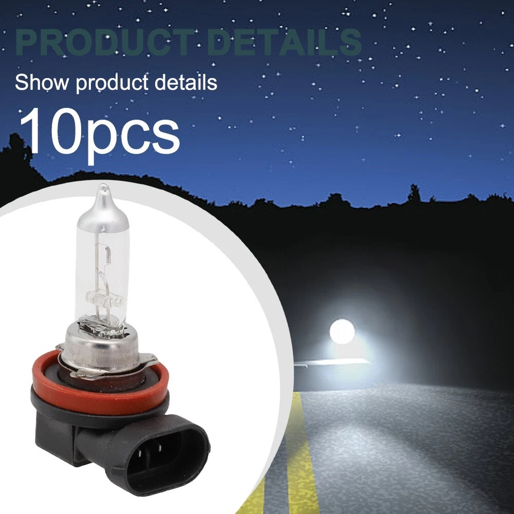 Product Description Features : *brand new and high quality *Made of high quality material, and practical to use *10PCS H11 12V 55W super white fog halogen bulb car headlight lamp *Halogen lamps can operate at higher temperatures compared to standard inflatable lamps with similar power and service , resulting light with higher luminous efficiency and temperature. *Used in almost all applications, including many cars, ships, landscape lights, etc.Because the nature of the items provided may be suitable for many different functions, make sure this is the correct type of application for the light bulb. Specification: * Bulb Type: Halogen * Material: Quartz * Light Color: White (As pictures show) * Socket Type: H11 * Current: 4.6A * Voltage: 12V * Power: 55W * Color Temperature: 6000K Package Contents: 10* Halogen Bulbs Note: 1.The real color of the item may be slightly different from the pictures shown on website caused by many factors such as brightness of your monitor and light brightness. 2.Please allow slight manual measurement deviation for the data. Payment Payment must be completed within 5 days. If you have any problems about payment, please contact us via ebay message. Delivery details Orders processed within 24-48 hours of payment verification. We only ship to confirmed eBay Order addresses. Your Order address must match your Shipping address. Please kindly note that we don't provide combined shipping because the shipping fee is calculated by weight. Also, the each additional item means the exact same one, with the same color and size. Service transit time is provided by the carrier. It takes about 3-7 working days. If you have not received your shipment within 30 days from payment, please contact us. We will track the shipment and get back to you as soon as possible with a reply. Our goal is customer satisfaction! Contact us We strive for 100% customer satisfaction! Positive Feedback is very important to us. If you have any questions, p lease feel free to contact us via "Ask seller a question" . We will reply your email within 24 working hours.