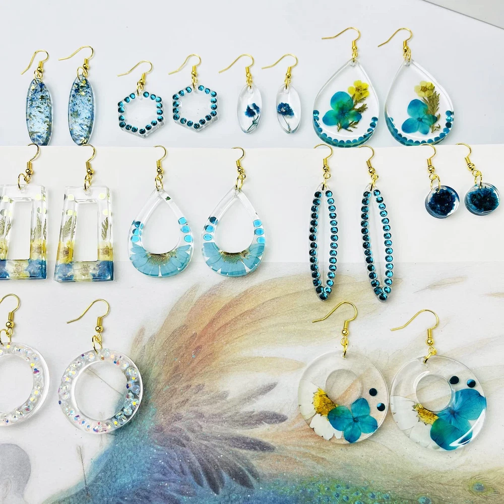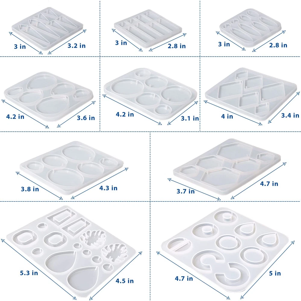 This is a silicone resin earring mold set, adopts classic design, features clean lines, easy to use and beginner-friendly. Package Including: 10pcs * resin earing mold Classic Design: This resin earring mold set adopts classic shape, round, oval, annular, triangle, rhombuses, etc., featuring clean lines, simple and neat No Drilling: Except the "C" shape in mold, all the rest will leave small holes for attacthing earring hooks(not includeded) when cured, No drilling needed 3 Different Size: Do you prefer small and exquisite trinket or bigger earrings? You can get both using this resin jewelry molds set. There are 3 different sizes for most of the shapes Premium Material: Molds are made of silicone, with mirror surface, easy to demold, good tear resistance and durable Gift Idea: Who wouldn't love a special gift? Send the handicrafts that show your creativity and craftmenship as gifts to your girl friends and bestie