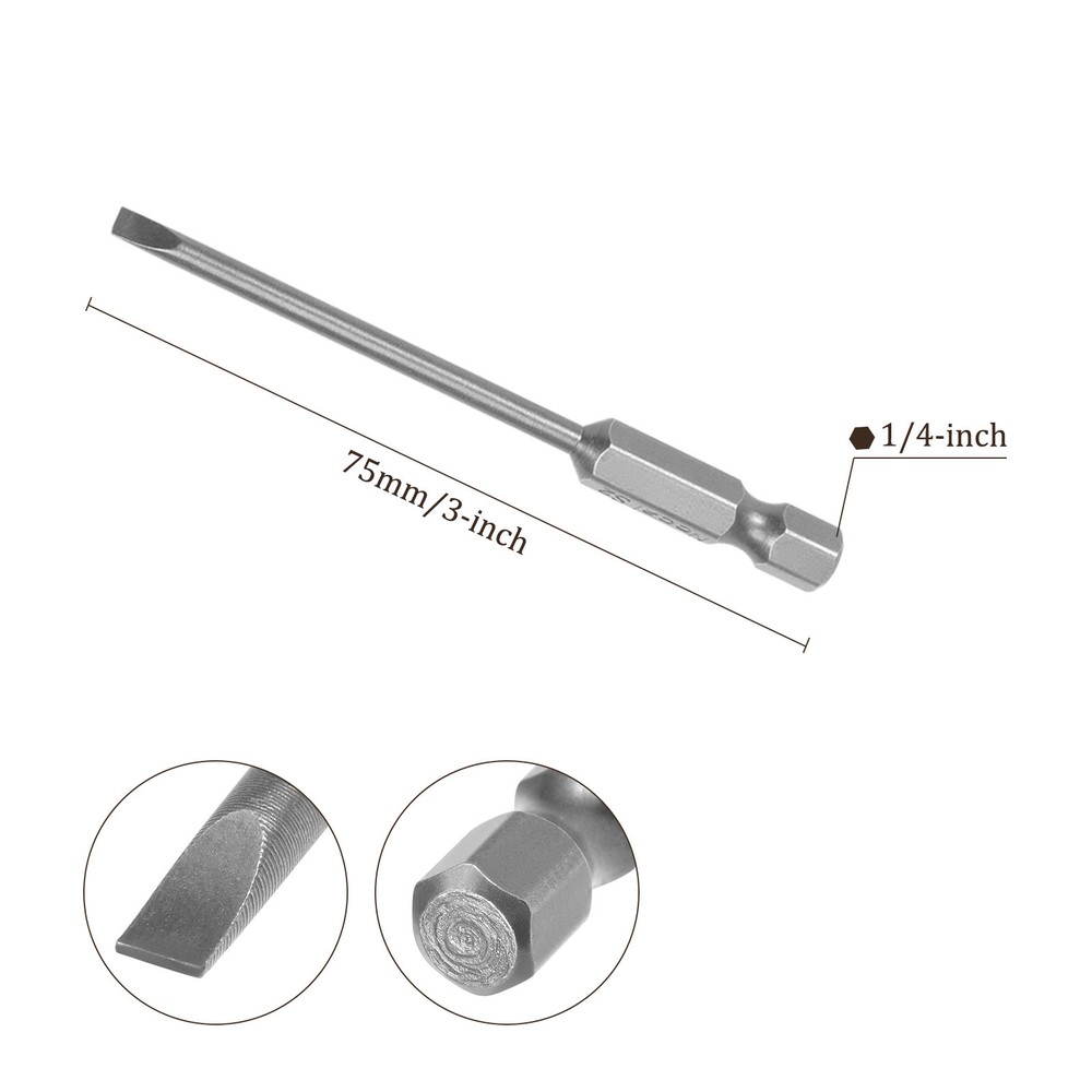 10pcs 2" H1/4 SL5 Magnetic Slotted Screwdriver Bits for Power Tools