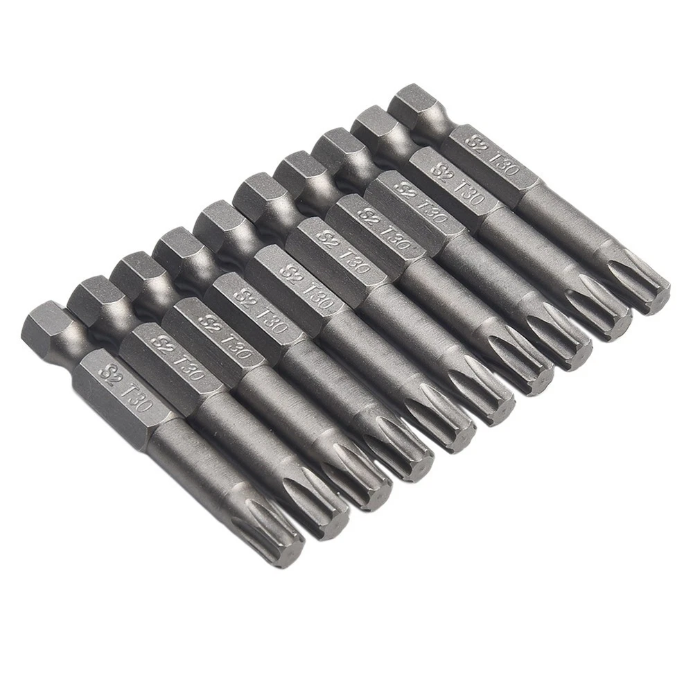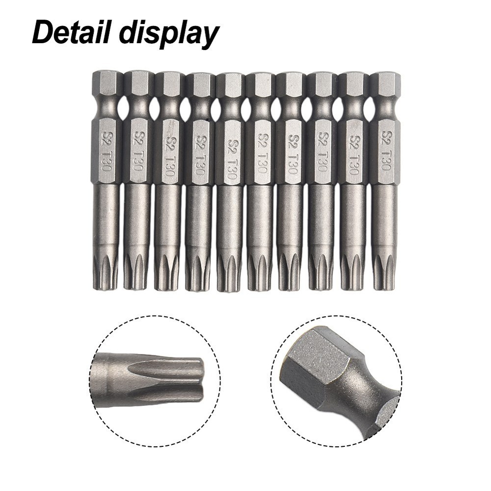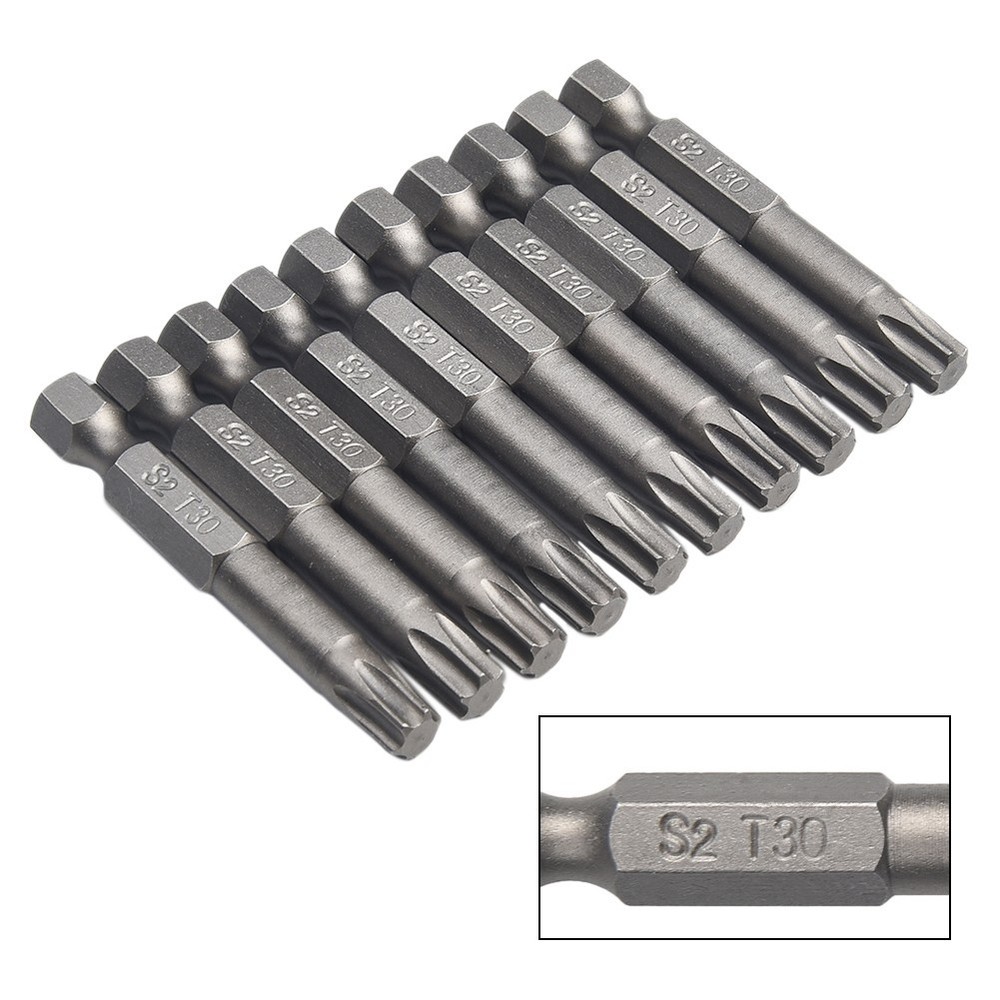 Beschreibung Features: *Made of high quality material, and practical to use *These drill bits are magnetic and can be fixed on a screwdriver, suitable for electric screwdrivers, manual screwdrivers, electric tools Exercises, air drills, . *Those Hex Head Screwdriver Bits are made of alloy steel which is a commonly used material in hardware with high hardness. *Magnetic bits are firmly fixed on screwdrivers. *These for Torx Screwdriver Bits are with a little magnetic design Specifications: Color: Silver (As Pictures Show) Model: for T30 Shank Type: 1/4 Hex shank Length: 50mm Quantily: 10pcs Package Contents: 10pcs* Screwdriver Bit Note: 1. The real color of the item may be slightly different from the pictures shown on website caused by many factors such as brightness of your monitor and light brightness. 2. Please allow slight manual measurement deviation for the data. POLICES Shipping Payment WARRANTY We only ship to confirmed ebay Order addresses. Please comfirm that your Order address is in line with your shipping address. Please kindly note that the c ombined shipping is not provided because the shipping fee is calculated by weight. Also, the each additional item means exactly the the same color and size. It takes about 7 -15 working days to US; about 10-30 working days to other countries. Transit time may be a little delayed because of the bad weather and customs inspection . If you do not receive your item within 30 working days since payment finished, please contact us immediately for further assistance. Payment must be completed within 5 days. If you have any problems about payment, please contact us via ebay message. We strive for 100% customer satisfaction! Positive Feedback is very important to us. If you have any questions, p lease feel free to contact us via "Ask seller a question" . We will reply your email within 24 working hours.