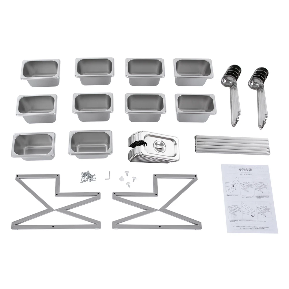 Description This expandable spice rack set allows you to organize your kitchen spices in a unified way, so you can say goodbye to the chaotic arrangement. The product is made of stainless steel with a triangular structural design that is durable and resistant to warping. It features 10 stackable pans and a length-adjustable rack, so you can easily store the product in cabinets when not in use, or accommodate different numbers of pans according to your needs, making your kitchen tidier and your cooking easier. Key Features Build to Last: The 201 stainless steel is rust-resistant, abrasion-resistant, and hard to deform, which makes this product sturdy and durable. 10*spice Box W/ Handle Organizer Shelf,2-tier,201 Stainless Steel Seasoning Rack Welcome Description This expandable spice rack set allows you to organize your kitchen spices in a unified way, so you can say goodbye to the chaotic arrangement. The product is made of stainless steel with a triangular structural design that is durable and resistant to warping. It features 10 stackable pans and a length-adjustable rack, so you can easily store the product in cabinets when not in use, or accommodate different numbers of pans according to your needs, making your kitchen tidier and your cooking easier. Key Features Build to Last: The 201 stainless steel is rust-resistant , abrasion-resistant , and hard to deform, which makes this product sturdy and durable. Expandable Design: The retractable length (14-25.6 inches) allows you to adjust it to fit different-sized platforms or let it carry different numbers of pans according to your needs. Strong Structure: The product with a triangle structure, thick materials, and reinforced screws allows it to hold less than 88.18 lbs without deformation or wobbling. User-friendly Design: Each lid comes with a handle and a small opening for the spoon to protect against dust and moisture while allowing you to easily access it with its small spoon to avoid flavor cascading. Excellent Spice Organizer: The 10 1.59 quart pans allow you to store spices, seasonings, dried fruits, dried fruits, or other food items in categories for easy daily access while saving space in your kitchen. Easy to Store: The rack can be retracted to 14 inches and the pans are stackable, so you can easily store them in your cabinets when not in use. Effortless Clean: Individually removable pans and smooth surfaces allow you to easily disassemble them for cleaning with water or a damp cloth. Customer Service: We aim to provide quality products and services. If you have any problems, please feel free to contact us. We will reply and solve the problem for you as soon as possible. Details Non-slip Feet: They provide the product with sturdy support without easily sliding on a smooth surface and protect the table surface from being scratched. Rounded Corners: The corners are smooth and rounded, so you can use them without hurting or scratching your hands. Application The products can be used to store seasonings, spices, sauces, jams, sweet soups, coffee beans, fruits, vegetables, and other food products in homes, commercial kitchens, pantries, cafes, beverage stores, restaurants, cafeterias, food trucks, and catering events. Specifications Color: Silver Style: Modern Material: 201 Stainless Steel Mount Type: Table Standing Assembly Required: Yes Number of Tiers: 2 Food Pan Quantity: 10* 1/9 Pans Load Bearing Capacity: <40kg/88.18lbs Each Pan Capacity: 1.5L/1.59qt Product Size: 35.5-65*35.5*20cm/14-25.6*14*7.9in Packaging Size: 41*31*16cm/16.14*12.2*6.3in Gross Weight: 4.3kg/9.48lbs Net Weight: 4kg/8.82lbs Package Included 1*Stainless Steel Frame 10*Pans 10*Lids 10*Ladles 1*Chinese Installation Instruction Other Needed Accessories Notes Please check the size carefully before ordering. Please allow the slight color difference caused by the shooting light and 1-3cm error due to manual measurement, and make sure you do not mind before you order. welcome Payment Delivery details Terms of sales About us Contact us Payment We accept ebay payment 。 Fees such as import duties, taxes are not included in the item price or shipping costs. These charges are the buyer's responsibility. Delivery details Shipping: 2-9 working days to: USA Terms of sales We maintain high standards of excellence and strive for hundred percent customer satisfaction. Feedback is very important to us. We hope that you contact us immediately before you give neutral or negative feedback, so that we can address your concerns. It is impossible to address issues if we do not know about them! About us Your satis faction is our ultimate goal. We work hard to earn your trust and future business. Our certified technicians have tested each item before shipping. The unit comes with 1 year limited warranty on all manufacturing defects. a) If you receive a defective item, you may return it or ask for a discount. Please contact us within 14 days after you receive the package. b) What you returned must be intact and in its original packaging as re? u. Customer is responsible for shipping costs of the returned item. c) We will cover the cost of shipping back t with the shipping rate indicated in the registration page. We will send you a new unit or refund the full payment you paid. Thank you. Contact us Business Hour Business Hour: Monday To Friday: 8:30 AM to 5:00 PM (Beijing China time) Due to time zones, our reply to your questions may not be immediately. But within above working time, we will reply your email within 24 hours. If it's non-workdays, please kindly be patient and wait till Monday. Please contact us with ebay message. Please feel free to contact us if you have any questions. Monday To Friday: 8:30 AM to 5:00 PM (Beijing China time) Due to time zones, our reply to your questions may not be immediately. But within above working time, we will reply your email within 24 hours. If it's non-workdays, please kindly be patient and wait till Monday. Please contact us with ebay messa