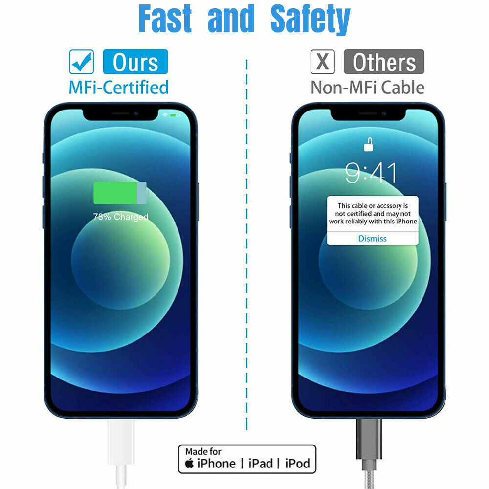 eBay Welcome To Our Store 10X 6Ft 3Ft USB Fast Charger Cable Lot For iPhone 11 8 7 6 XR Charging Cord Package include : 10 X 3ft or 6ft USB Charging Cable Features: This product is a High quality cable cable and 100% brand new It is Compatible with many smartphones and tablets, digital product, other android brands. It has 1Port : for apple port A durable material with stylish design and finish - It will last you longer. It will charge your device faster - your phone will be ready to use in no time. This cable can be used for fast charging and data transmission. Compatible with : For Apple iPhone 5/5C /5S /6/6+ /6S/6S+ /SE /7/7+ /8/8+ /X /XS/XS Max /XR /11 /11 Pro /11 Pro MAX For Apple iPad 4th Gen/ For Air/For Air 2/For iPad 2017/For iPad 2018/For iPad Mini/For iPad Mini 2/For iPad Mini 3/ For iPad Mini 4/ For iPad Pro 9.7, 10.5 & 12.9 inch For Apple iPod Nano 7th Gen/For iPod Touch 5th Gen/For iPod Touch 6th Gen FAST CHARGE : High tenacity and high purity copper wires inside the charger cord contribute to fast charging and stable data transf er Specification: Type: Heavy Duty ,3Ft 6FT USB Cable, Charging & Data Sync Cable ,Cable & Cord,For Apple iPhone Charging Cable Feature s: Fast Charge, Heavy Duty, Flexible, Lightweight Cable L e ngth : 3ft/6ft Color : White