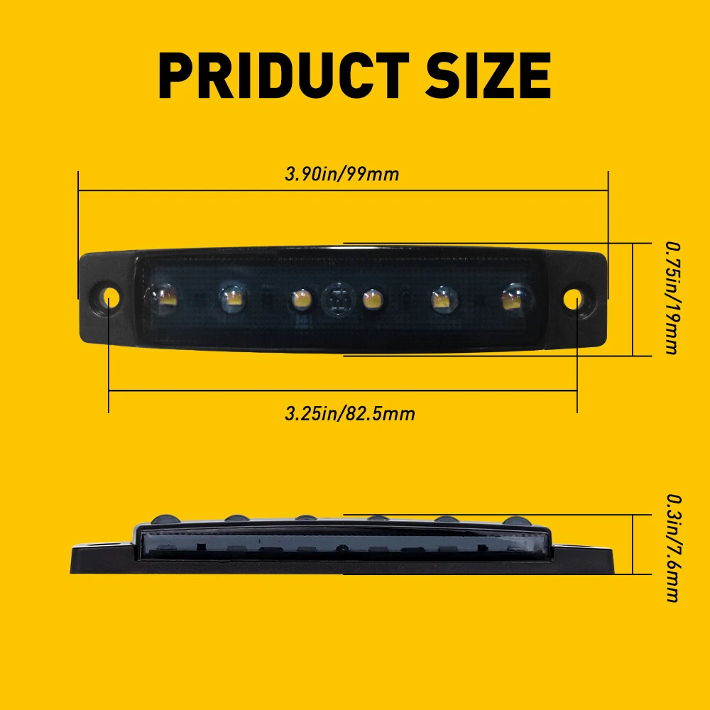 Specification: Product packaging: bag packaging The product includes: white light*10 (each light is equipped with 2 screws and a gasket) Number of LEDs: a single 6LED Lamp shell color: smoked shell Mode: black wire negative, yellow wire positive yellow, red positive red, white positive white, blue positive blue, green positive green Suitable voltage: 12V voltage Waterproof grade: IP67 Service life: 50000+ hours Uses: Can be used as signal lights, tail lights, running lights, etc. to improve driving safety Models used: trucks, trucks, various work vehicles, etc. characteristic: 10x White 6LED Side Marker Clearance Lights For Truck Trailer RV tail lights NEW Specification: Product packaging: bag packaging The product includes: white light*10 (each light is equipped with 2 screws and a gasket) Number of LEDs: a single 6LED Lamp shell color: smoked shell Mode: black wire negative, yellow wire positive yellow, red positive red, white positive white, blue positive blue, green positive green Suitable voltage: 12V voltage Waterproof grade: IP67 Service life: 50000+ hours Uses: Can be used as signal lights, tail lights, running lights, etc. to improve driving safety Models used: trucks, trucks, various work vehicles, etc. characteristic: Good sealing, strong waterproof, low energy consumption, high brightness, long service life Note: Mark and drill holes according to the foam tape base provided; Peel and stick the foam tape to the light; Run through the wire lead to the center hole and use bolts and nuts to fix 2 sides. Center hole might not be necessary if use some washer under the foam tape base when fixing the two sides. Item Specifics Brand AUXITO Manufacturer Part Number CBD-CTX-W-10YX Country/Region of Manufacture China Manufacturer Warranty 2 Years Type LED Side Marker Clearance Lights Features CANbus Compatible Voltage 12 V To Fit Side Indicator Item Type Tail Light Assembly Placement on Vehicle Front, Rear, Left, Right Fitment Type Direct Replacement Fitment For Pickup,truck trailer,boat,Lorry,Van,caravan Number of Bulbs 10 LED quantity 6 x light emitting diodes Waterproof IP67 Bulb Life Hours Up to 5,000 Hours Payment Returns DESCRIPTION PAYMENT SHIPPING RETURN POLICY CONTACT US Shop Category Store Home LED Headlight ◈ H13 LED FogLight ◈ H10 / 9145 / 9140 LED Reverse Light ◈ T15/921/W16W LED Side Marker Light Car Parts & Accessories Tail Light assemblies Other Hot Item Picture New List Item For 2004-06 Scion xB Front Black LH Driver Side Outside Door Handle w/ Keyhole USD 20.99 For 2016-2018 GMC Sierra Front 1500 License Plate Tag Frame Mount Bracket Holder USD 23.99 AUXITO 2X H1 LED Headlight High Low Bulb Kit Beam 100W 20000LM 6500K ERROR FREE USD 23.99 Canbus H4 9003 LED Headlight Light Globe High Low Beam High White Brightness 2x USD 37.99 3157 3156 3056 Red Brake LED Stop Tail Light Bulbs Replace Halogen CANbus 2Set USD 37.99 Help & Info Payment Policy Shipping Policy Return Policy FAQ About Us 10x White 6LED Side Marker Clearance Lights For Truck Trailer RV tail lights NEW Specification: Product packaging: bag packaging The product includes: white light*10 (each light is equipped with 2 screws and a gasket) Number of LEDs: a single 6LED Lamp shell color: smoked shell Mode: black wire negative, yellow wire positive yellow, red positive red, white positive white, blue positive blue, green positive green Suitable voltage: 12V voltage Waterproof grade: IP67 Service life: 50000+ hours Uses: Can be used as signal lights, tail lights, running lights, etc. to improve driving safety Models used: trucks, trucks, various work vehicles, etc. characteristic: Good sealing, strong waterproof, low energy consumption, high brightness, long service life Note: Mark and drill holes according to the foam tape base provided; Peel and stick the foam tape to the light; Run through the wire lead to the center hole and use bolts and nuts to fix 2 sides. Center hole might not be necessary if use some washer under the foam tape base when fixing the two sides. Payment Returns All rights reserved. On Nov 24, 2024 at 18:50:53 PST, seller added the following information: