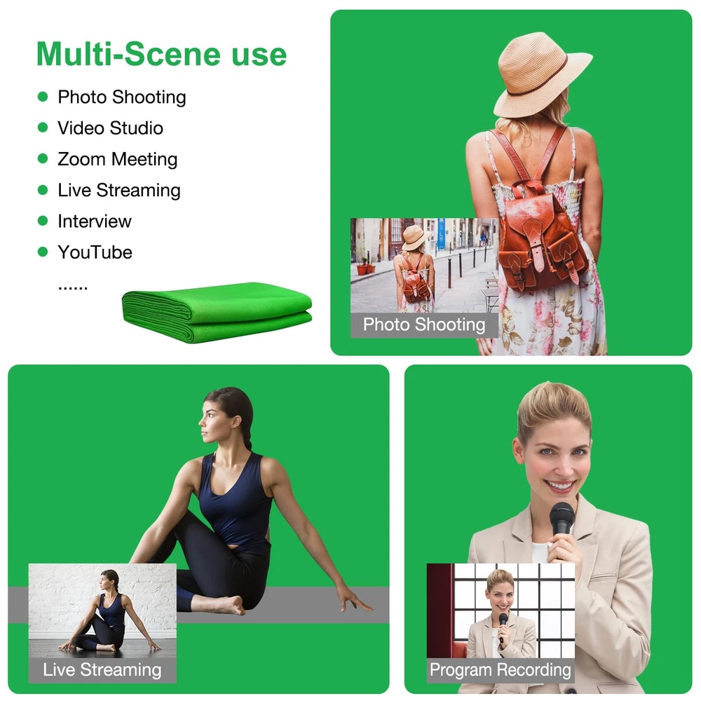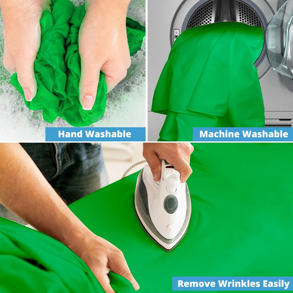 10x10 FT Green Screen Backdrop for Photography, Large GreenScreen Background for Zoom Meeting, High Density Chromakey Green Backdrop Curtain for Video Photoshoot Studio Gaming YouTube Conference Streaming 【10X10 FT Large Size】Made of high-density polyester fabric, this green screen backdrop is more vertical than cotton material, more durable and easier to restore. It's not easy to wrinkle, completely seamless, opaque, and less reflective. And this 10X10 feet size is large enough to accommodate multiple people shooting and equipment placement at the same time, ideal for professional photographers and video makers. 【Double-sided Use】Our photography backdrops on both sides can be used and are thicker and less wrinkled than single-sided backgrounds. The front and back side are pure green with different materials. One side is soft and the other is smooth and shiny. They can be applied to different scene requirements. Lightweight and foldable material makes it easy to store and carry. 【Easy to Clean & Iron】Our green backdrop curtain is durable, can be cleaned in a washing machine for daily cleaning. The green screen blanket can be washed multiple times without fading. After washing, please smooth the backdrop and lay it flat.Note:BLEACH and CORROSIVE detergent are not permitted to use and maximum water temperature≤104℉. Before use, you can iron the surface with a steam iron instead of a dry iron. 【Edge Stitching】All the edges of the sheet are carefully stitched design, firm and durable, not easy to tear. You don't need to worry about the thread falling apart during use or washing. Our background cloth has a 2.7 inch pole pocket so you can easily hang it on the backdrop stand (stand not included). 【Wide Application】This chroma green screen is thick and true green, chroma keyed perfectly, suitable for professional or amateur photographer, video editor, filmmakers and Youtubers etc. Ideal for products, portrait photoshoot, full body shots, professional photo studio shooting, home, school, wedding, baby shower, parties decoration, Youtube video, food pictures, live game.