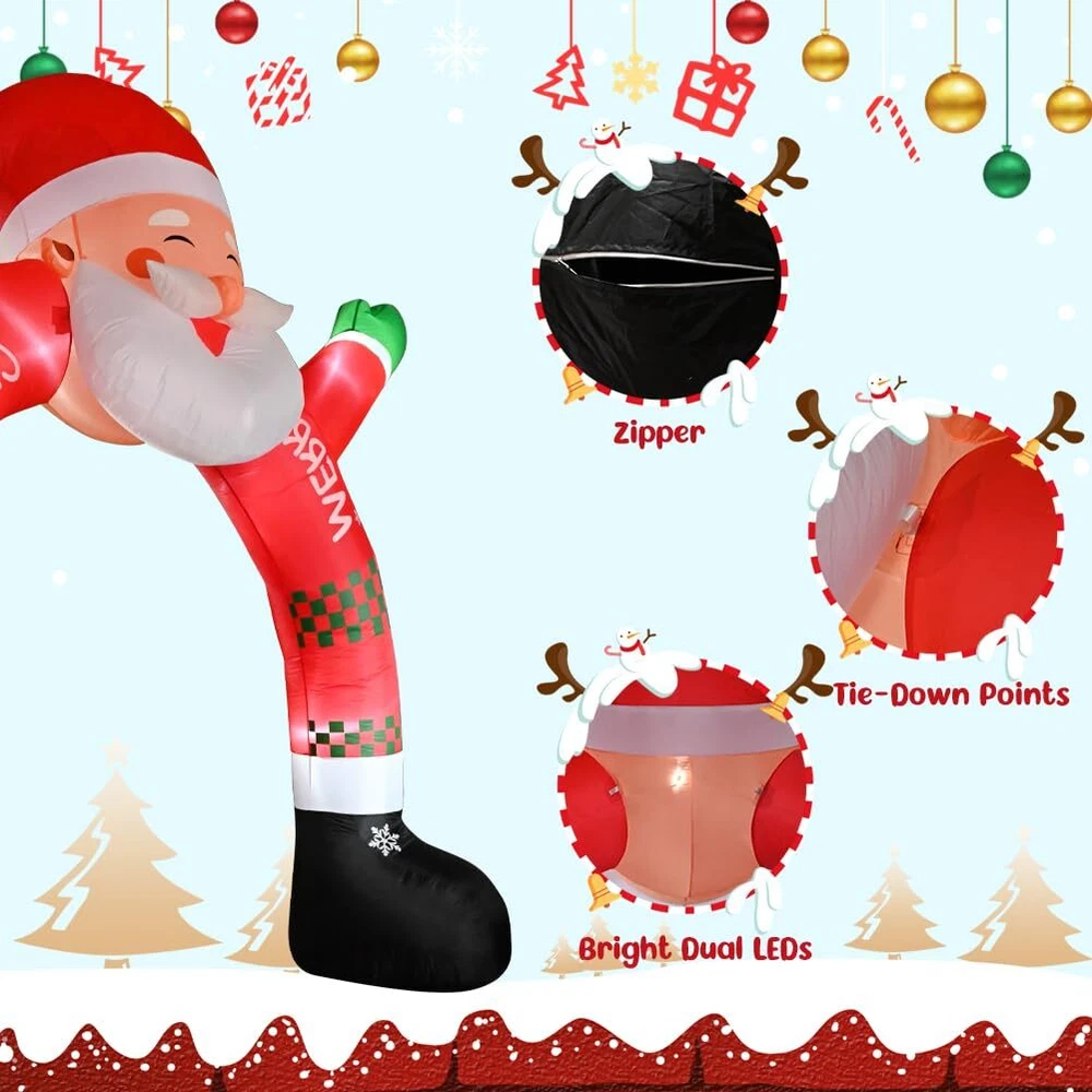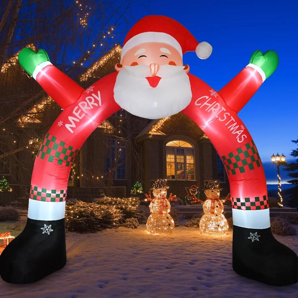 11 FT Christmas Inflatable Archway Decorations, Christmas Inflatable Santa Claus Arch Blow Up Yard Decorations with Built-in Led Lights for Xmas Holiday Party Indoor Outdoor Garden Lawn Winter Decor Perfect Christmas Decorations: Each package includes 1 inflatable fan, 1 adapter, 8 plastic ground stakes, 2 water bags, 4 ropes and instructions. The ground stakes can help you secure the decoration to the ground. What’s more, the power cord also gives you more freedom to place this Christmas decor around your home. Eye-catching LED Light: Christmas archway inflatable decoration comes with bright built-in LED lights. How awesome is that! That inflatable Christmas yard decorations will definitely surprise your neighbors and friends! High Quality: Our santa arch inflatable products use high-strength waterproof polyester fabric, built-in fixed water bag, four tethers and eight ground stakes, which are more stable for outdoor use. Make it work well in different weather,perfect for Christmas outdoor yard decorations. Easy to Set up: Connect to the power supply to inflate, make sure the blower is facing outwards, and it will blow up within minutes. Additionally, unplug the power and it will also deflate so quickly that you can easily fold it up when not in use. Festive Holiday Spirit: The Christmas inflatable archway decorations will bright the cheerful atmosphere of Christmas night. It's nice and good for festival celebration, you can also send it to your children and friends as christmas gifts, having a good enjoyment during the christmas festival.