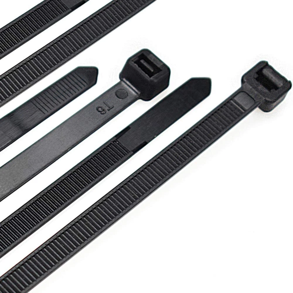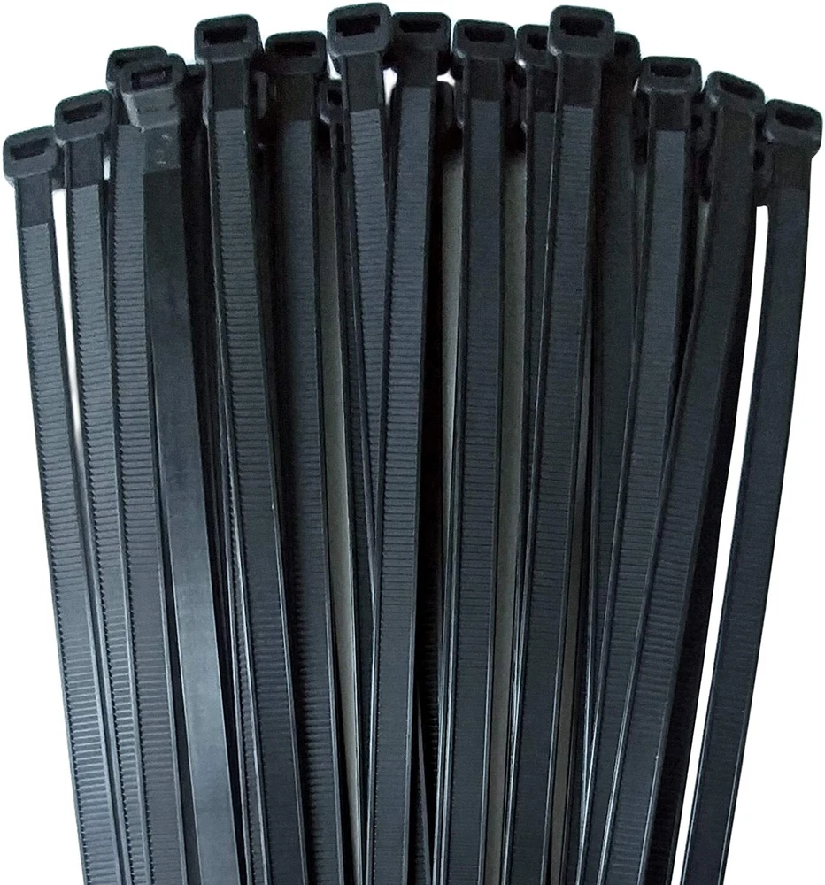 11' Zip Ties for Heavy Duty Cables 50Lb Black SKU: 55090 Details Ideal for all bundling purposes; wires, cables, hoses, or ducts, you name it, and these ties will bundle it. Made from durable 100 percent nylon 6/6 material, these ties feature our patented Double Lock design, with locking teeth on both sides of the tie and at the head ensuring a stronger connection and 50 percent greater tensile strength than the industry standard. The bent tip ensures easy insertion into the tie head while close serrations on both sides of the tie promote precise adjustment. The smooth radiused edges ensure easy "slip" as you tighten while finger grips on the end ensure a secure and comfortable grip when hand-tightening. Investigated using particular requirements that allowed it to be a UL recognized component and with a serviceable temperature range from 0 deg C to 85 deg C (32 deg F to 185 deg F) these ties are designed to last. Features Ideal for bundling wire, cable, hoses and ducts High-strength nylon construction Stainless steel pawl 11 inch length holds larger bundles UV-resistant for indoor and outdoor use Stippled body helps prevent slippage Smooth notch-less outside surface helps reduce stress under tension Ridged tail for an easy grip during installation Made from durable 100% nylon 6/6 material 3" Maximum bundle diameter 11" Long X 0.17" Wide X .055 Thick with 75 Lb. Tensile Strength Black in color 100/Bag