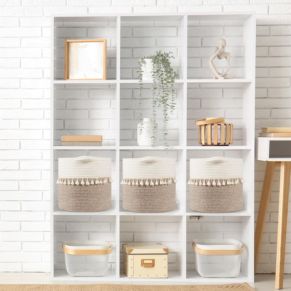 These stylish and practical small basket are perfect for organizing and storing items in your home. The high-quality cotton rope used to create this woven basket is durable and long-lasting, ensuring that it can withstand daily use. The sturdy handles ensure that you can easily carry the storage bins from room to room. Sturdy and Stylish: Our trendy boho tassels with cotton rope woven baskets for storage are a unique addition to your home decor. Stand out from the competition, the sleek round shape and well-crafted handles make it a must-have statement piece in any space. Available in 7 colors, you can easily find a basket organizer that complements the existing color scheme of your living room, bedroom, bathroom, baby room. High-quality Material: Our storage baskets are made from 100% pure cotton, ensuring a soft and durable construction that will last for years to come. The natural material is also environmentally friendly and safe for storing a variety of items. Versatile for Various Needs: The 3-pack can be used flexibly, whether it is in the bedroom to organize underwear and socks, the living room to organize the remote control magazines, or in the bathroom to store toiletries, it can be easy to do, so as to keep the home space neat and orderly. Note on Dimensions: Our Basket size 11"x11"x11"(manual measurement has ±0.2 inches error, which is normal range). Please check the size information carefully and measure the space you are using before purchasing. Easy Shaping: By filling decorative storage baskets for shelves with a suitable amount of stuffing material, such as clothing or towels, it can be reshaped to its original form. Alternatively, the storage bins can be reshaped using a steam iron.
